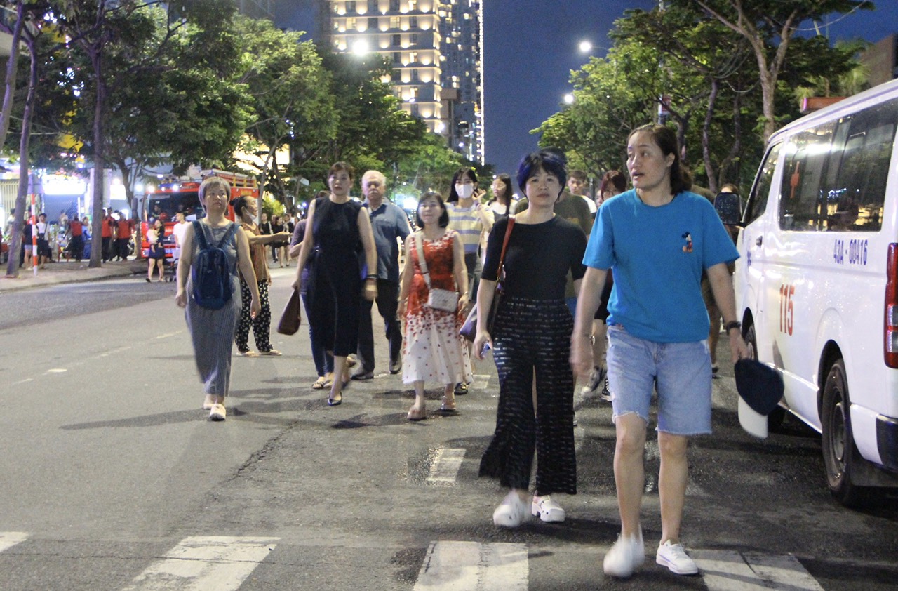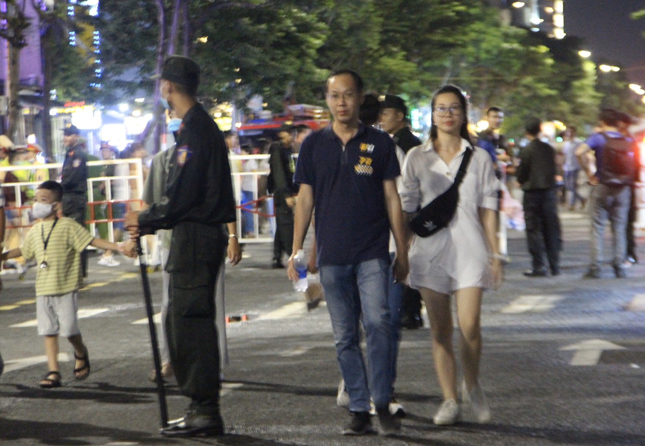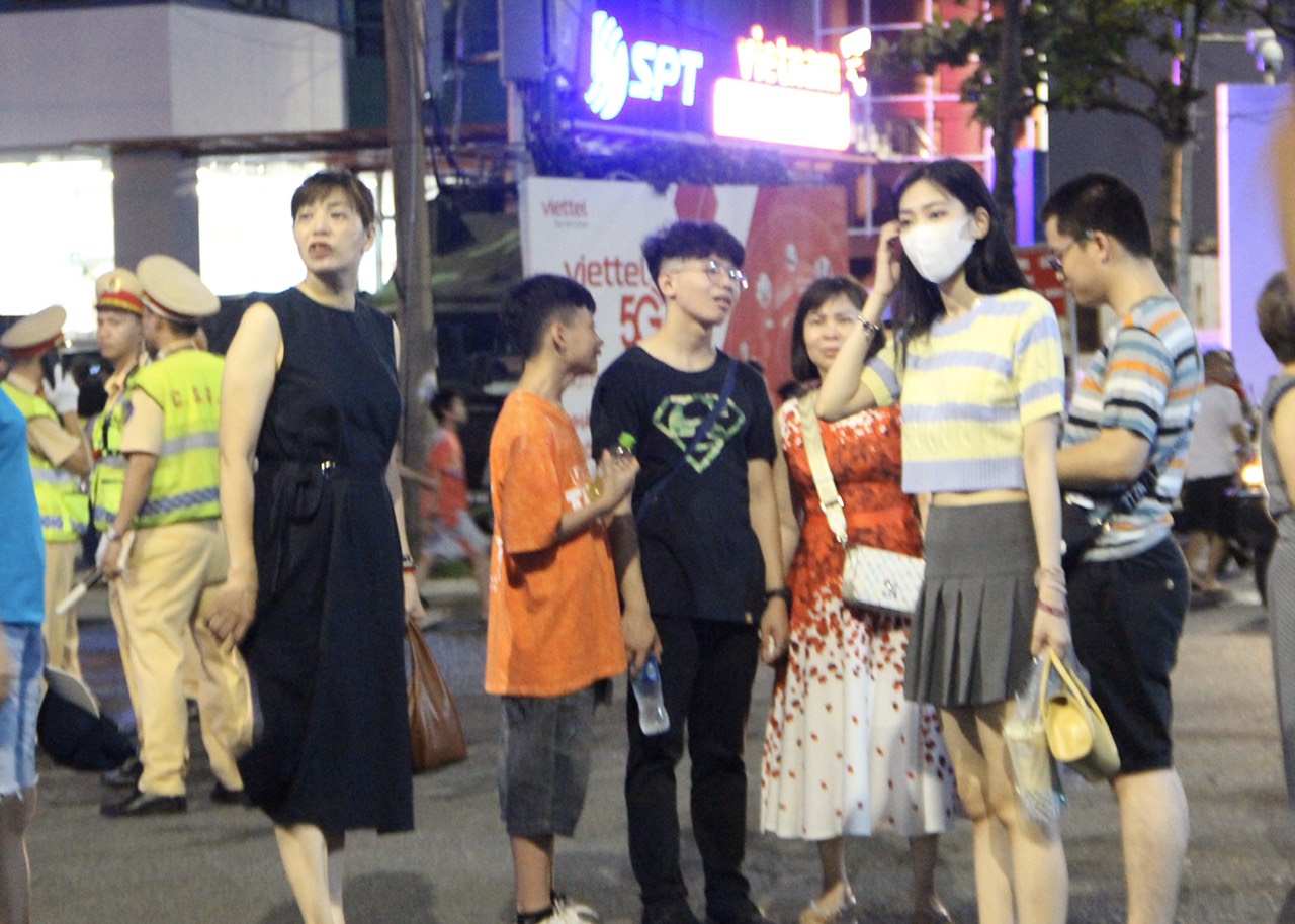Tối 10-6, hàng nghìn người dân, du khách cùng đổ ra các tuyến đường trung tâm, dọc bờ sông Hàn để cùng chứng kiến đội Canada và Pháp kể câu chuyện tình yêu bằng ánh sáng. Dưới đây là một số hình ảnh ghi nhận không khí xung quanh khu vực diễn ra màn tranh tài của hai đội.