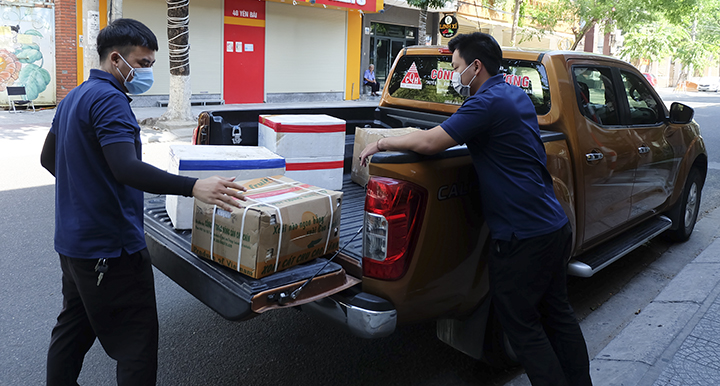 “Riêng tại khu vực Sơn Trà, các shipper giao hàng bằng xe máy chưa được vào nên bên Cửa hàng đã được thành phố cấp thẻ nhận diện để giao hàng bằng xe tải nhỏ để giao hàng cho người dân ở phường Nại Hiên Đông, Thọ Quang, Mân Thái, An Hải Bắc,…”, anh Phạm Xuân Vỹ thông tin thêm.