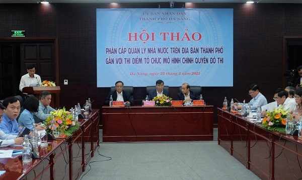 Hội thảo "Phân cấp quản lý nhà nước trên địa bàn gắn với thí điểm tổ chức mô hình chính quyền đô thị" do UBND thành phố tổ chức vào ngày 25-3-2021