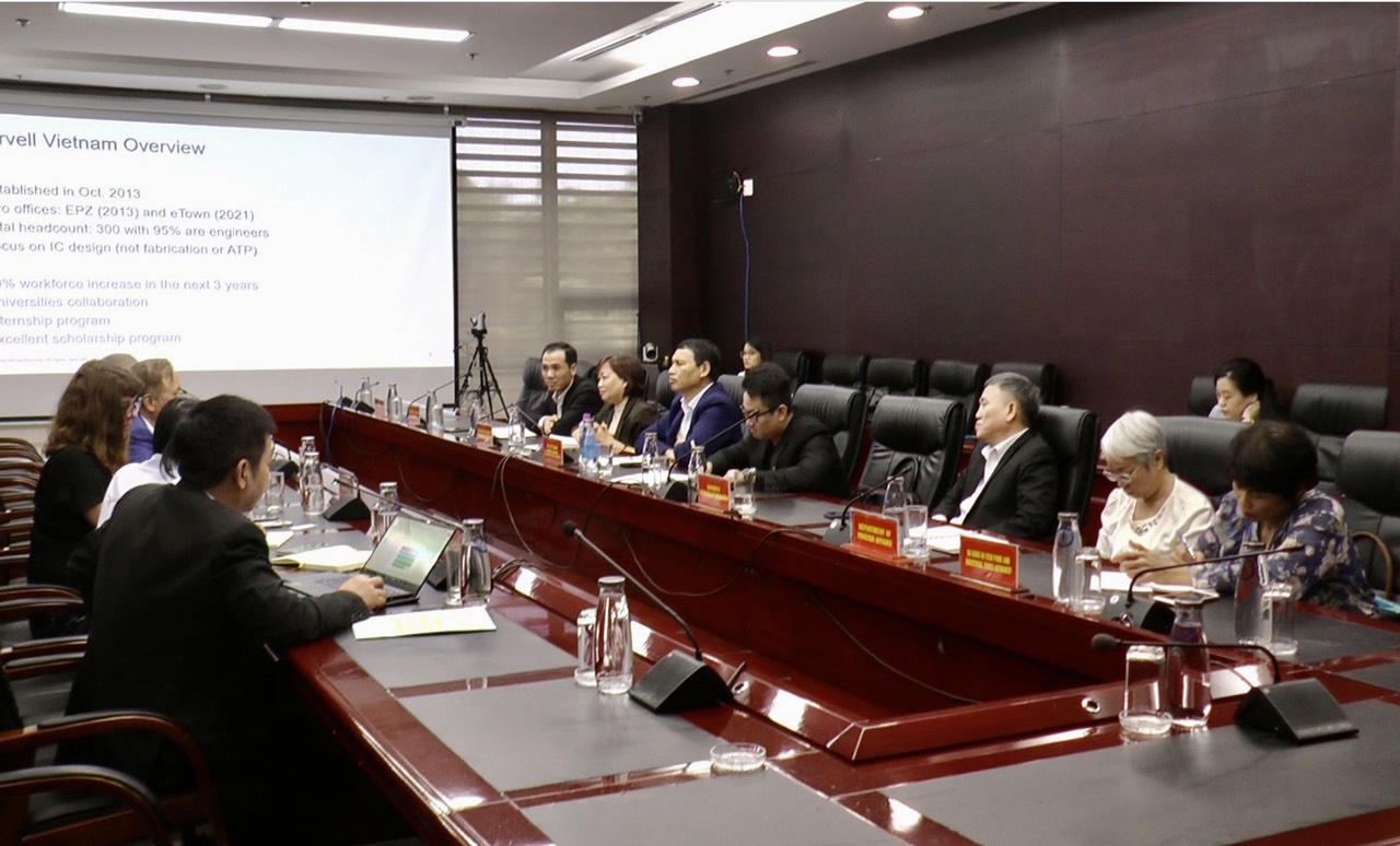 Tại buổi làm việc, đại diện lãnh đạo Đại học Đà Nẵng, các sở, ban, ngành có liên quan cùng trao đổi, thảo luận với đại diện công ty Marvell về kế hoạch tuyển sinh, đào tạo chuyên sâu về vi mạch bán dẫn, hỗ trợ học bổng cho sinh viên theo học các ngành liên quan đến vi mạch bán dẫn, tìm hiểu về hạ tầng công nghệ…