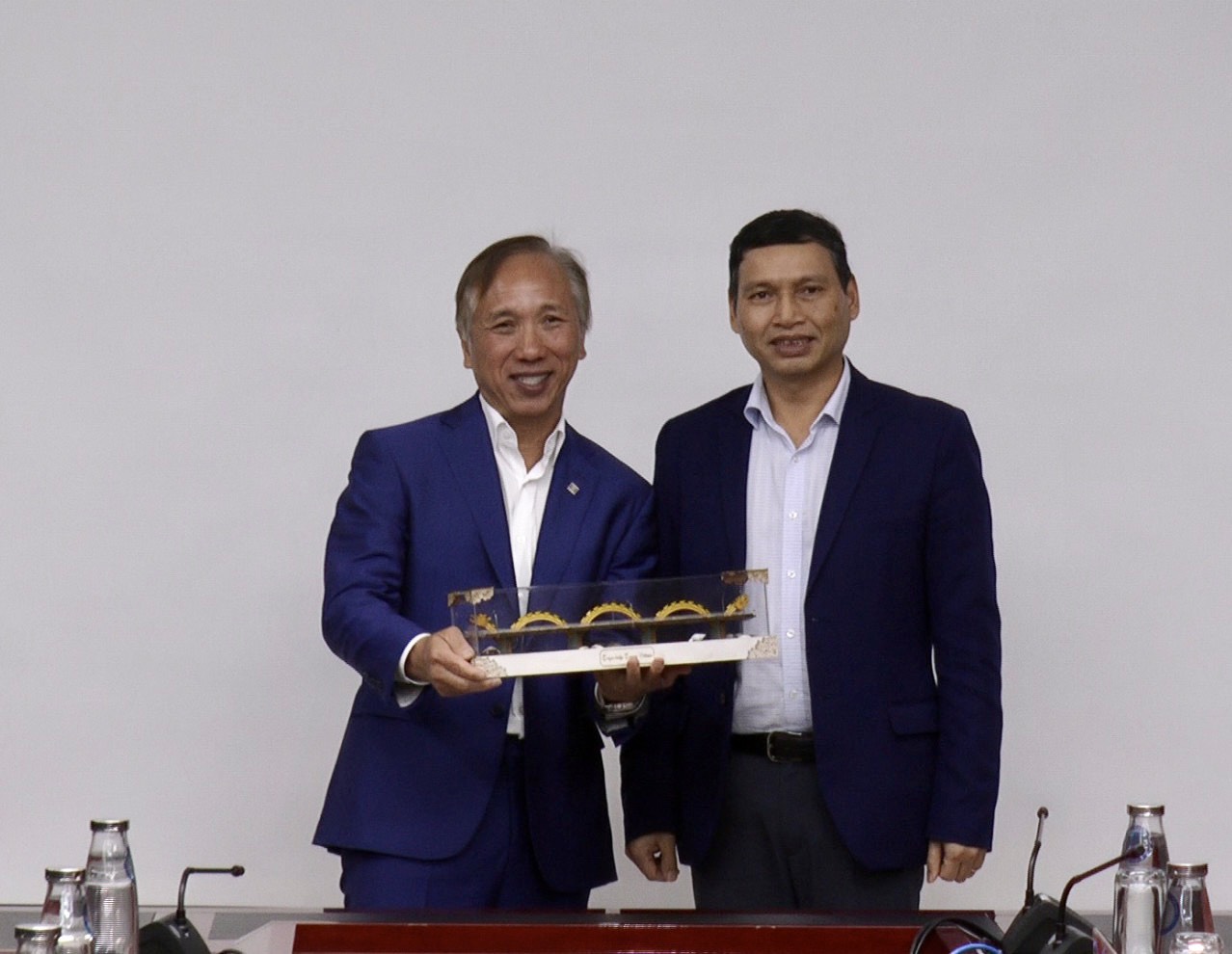 Phó Chủ tịch Thường trực UBND thành phố Hồ Kỳ Minh tặng quà lưu niệm đến đoàn công tác Công ty Marvell (Hoa Kỳ)