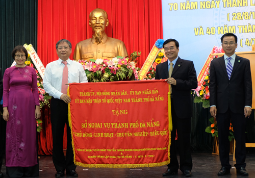 Thay mặt Thành ủy, HĐND, UBND, UBMTTQVN thành phố, Phó Chủ tịch Nguyễn Ngọc Tuấn đã trao tặng Sở Ngoại vụ thành phố bức trướng với nội dung “Chủ động – Linh hoạt – Chuyên nghiệp – Hiệu quả”