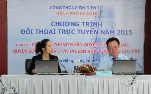 Chương trình đối thoại trực tuyến chủ đề "Cấp Giấy chứng nhận quyền sử dụng đất, quyền sở hữu nhà ở và tài sản khác gắn liền với đất" do Cổng Thông tin điện tử thành phố Đà Nẵng phối hợp với Sở Tài nguyên và Môi trường, Văn phòng Đăng ký đất đai, Sở Xây dựng, Cục Thuế, Trung tâm Công nghệ thông tin Tài nguyên Môi trường tổ chức hôm nay, ngày 26-11, nhằm nhằm lắng nghe, tiếp nhận, giải đáp các thủ tục, vướng mắc của nhân dân.