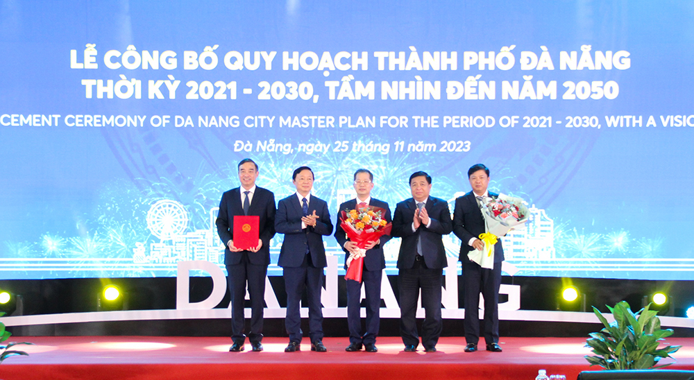 Phó Thủ tướng Trần Hồng Hà trao quyết định của Thủ tướng Chính phủ về phê duyệt Quy hoạch thành phố Đà Nẵng thời kỳ 2021 - 2030, tầm nhìn đến năm 2050 cho lãnh đạo thành phố