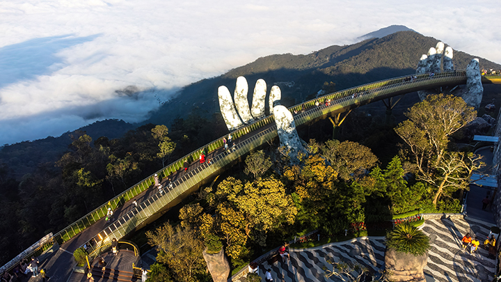 Cầu Vàng tại Bà Nà Hills là một trong những điểm nhấn quan trọng của ngành du lịch thành phố, là cực hút khách du lịch trong nước và quốc tế đến với Đà Nẵng. ẢNH: NGUYỄN TRÌNH