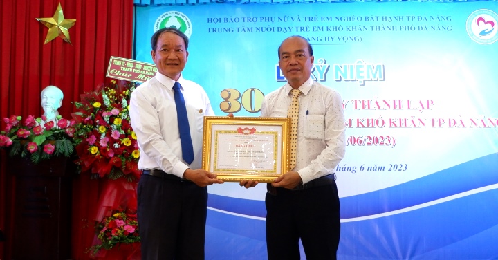 Lãnh đạo thành phố tặng kỷ niệm chương tri ân các thế hệ lãnh đạo Trung tâm Nuôi dạy trẻ khó khăn thành phố Đà Nẵng