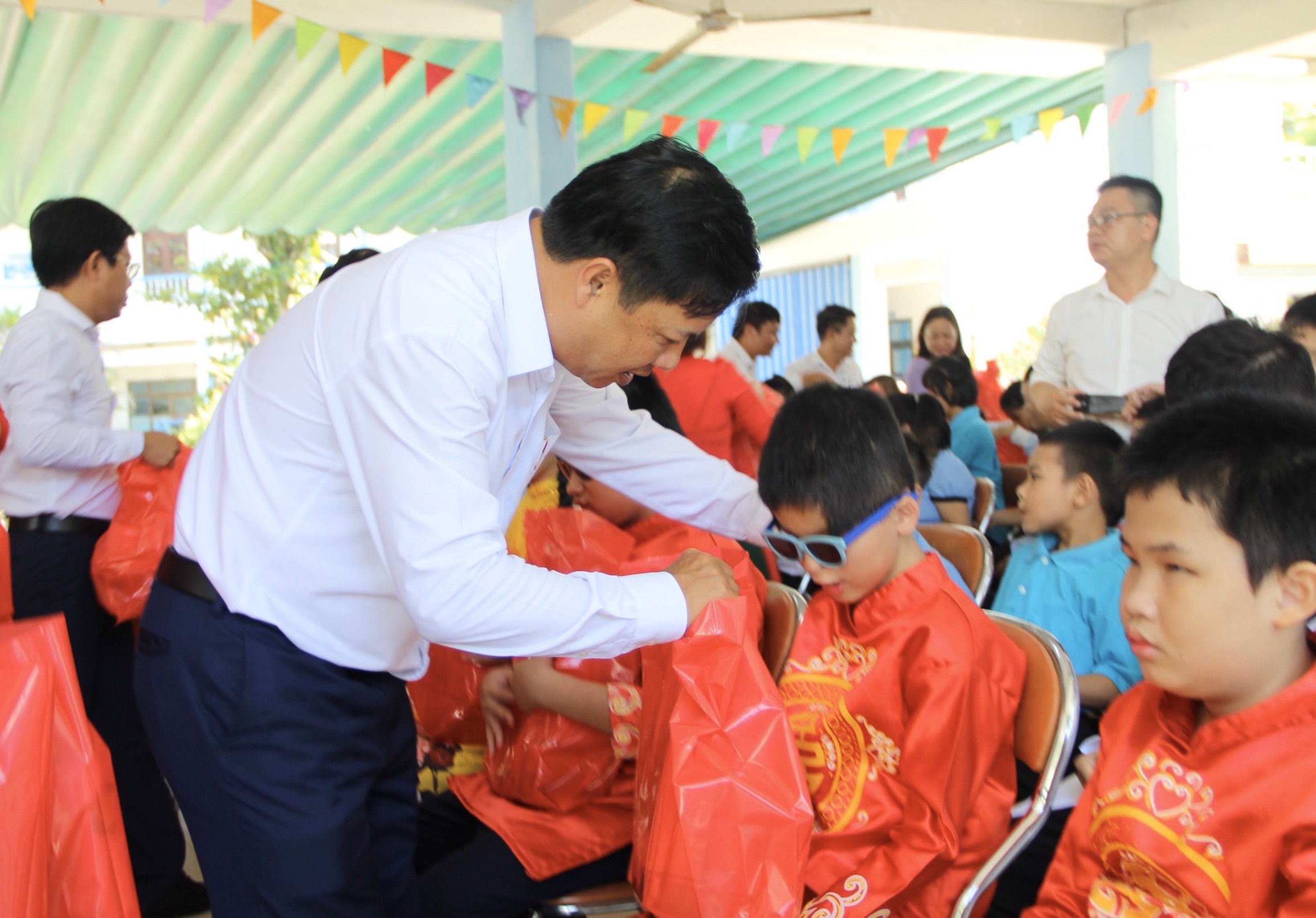 Phó Bí thư Thường trực Thành ủy Lương Nguyễn Minh Triết tặng quà tại Trung tâm Hỗ trợ phát triển giáo dục hòa nhập Đà Nẵng