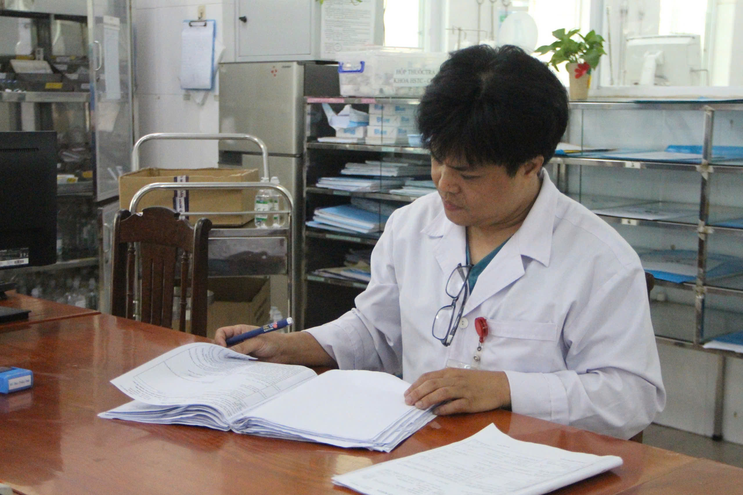 Bác sĩ Đào Trọng Đức cẩn thận ghi chép thông tin tình trạng bệnh nhân