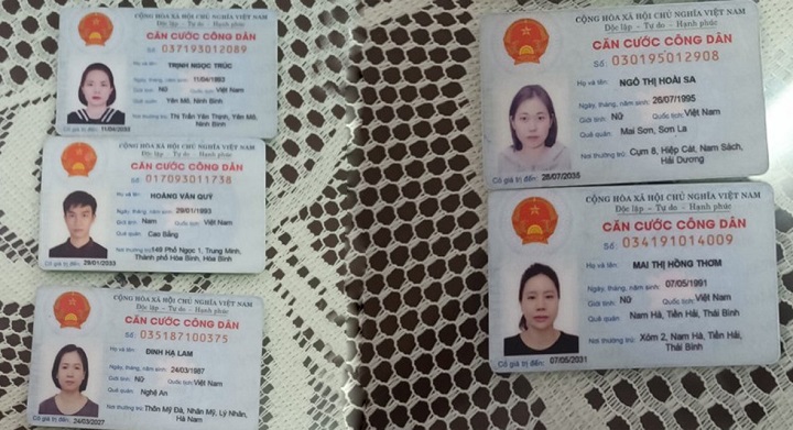 Qua đấu tranh ban đầu, các đối tượng thừa nhận hành vi vi phạm của mình. Đồng thời cơ quan Công an đã thu giữ được 5 CCCD giả mang tên “Trịnh Ngọc Trúc”, “Ngô Thị Hoài Sa”, “Hoàng Văn Quý”, “Đinh Hạ Lam”, “Mai Thị Hồng Thơm” cùng hàng chục điện thoại di động khác nhau là tang vật vụ án.
