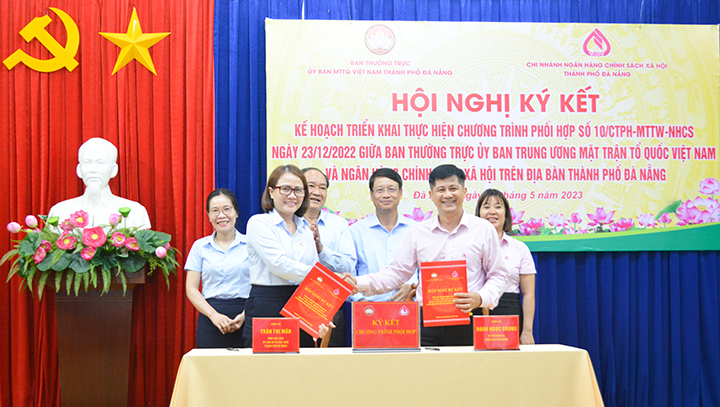 Chiều 26-5, Ngân hàng Chính sách xã hội (NHCSXH) thành phố và Uỷ ban MTTQ Việt Nam thành phố ký kết Triển khai thực hiện Chương trình phối hợp số 10/CTrPH-MTTW-NHCS ngày 23-12-2022 giữa Ban Thường trực Ủy ban Trung ương MTTQ Việt Nam với Ngân hàng Chính sách xã hội trên địa bàn thành phố Đà Nẵng. Đến dự có Chủ tịch Ủy ban MTTQ Việt Nam thành phố Ngô Xuân Thắng.