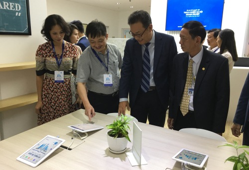 Trưởng Ban Tuyên giáo Thành ủy Đặng VIệt Dũng tham quan không gian làm việc chung của S.hub