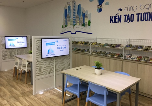 Không gian Chia sẻ S.hub được kế thừa và xây dựng từ mô hình "Thư viện Thông minh 2.0" của Samsung cải tiến mô hình thư viện truyền thống thành không gian mở, hiện đại mang đến những cảm hứng sáng tạo nhằm đáp ứng nhu cầu ngày càng cao của giới trẻ Việt Nam không chỉ để học tập và trao đổi tri thức, mà còn là tương tác và kết nối sẻ chia.