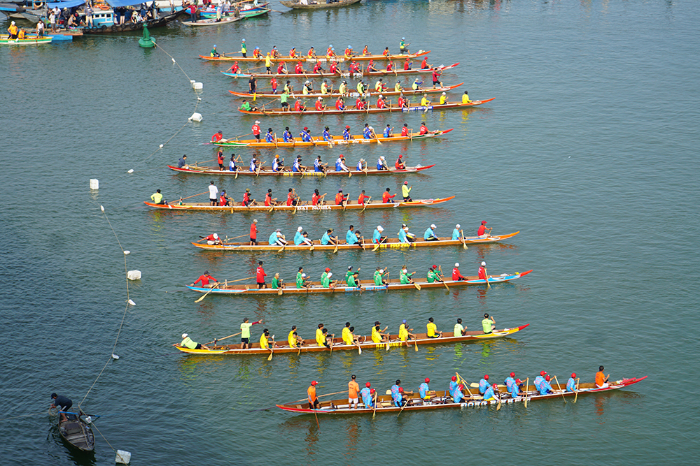 Giải đua thuyền năm nay quy tụ 16 đội thuyền tham gia, mỗi thuyền có 17 vận động viên. Giải đua với 3 giải đấu gồm: giao hữu mở rộng (4 vòng đôi, cự ly 7 km); vạn nghề địa phương (3 vòng đôi, cự ly 5 km) và chính thức mở rộng (6 vòng đôi, cự ly 10 km).