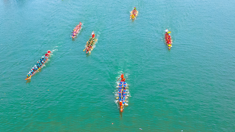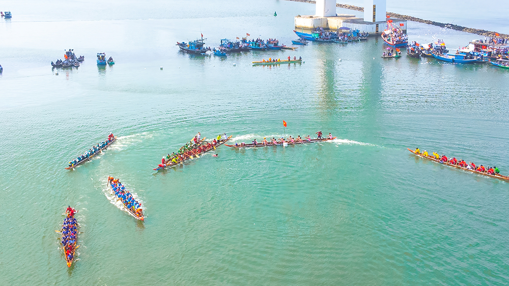 Giải đua thuyền diễn ra trong không khí sôi nổi, các đội thi quyết liệt trong từng chặng đua