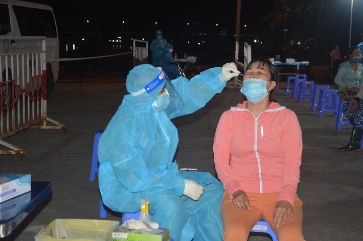 Lực lượng y tế trắng đêm lấy mẫu xét nghiệm COVID-19 tại cảng cá Thọ Quang. Ảnh: Thủy Thanh