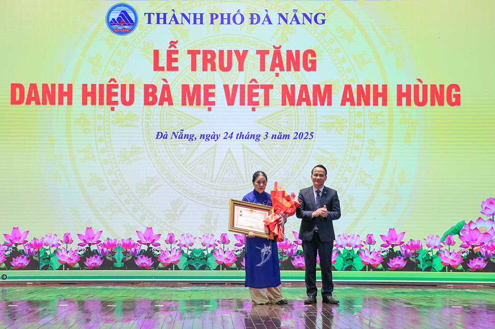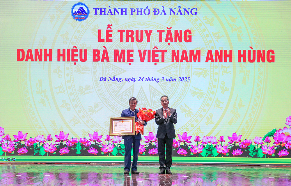 Nhân kỷ niệm 95 năm ngày thành lập Đảng bộ thành phố (28-3-1930 - 28-3-2025) và 50 năm ngày Giải phóng thành phố (29-3-1975 - 29-3-2025), chiều 24-3, thành phố tổ chức lễ truy tặng danh hiệu Bà mẹ Việt Nam anh hùng và tôn vinh điển hình tiên tiến năm 2024, trao tặng Giải thưởng "Cống hiến cho Đà Nẵng".