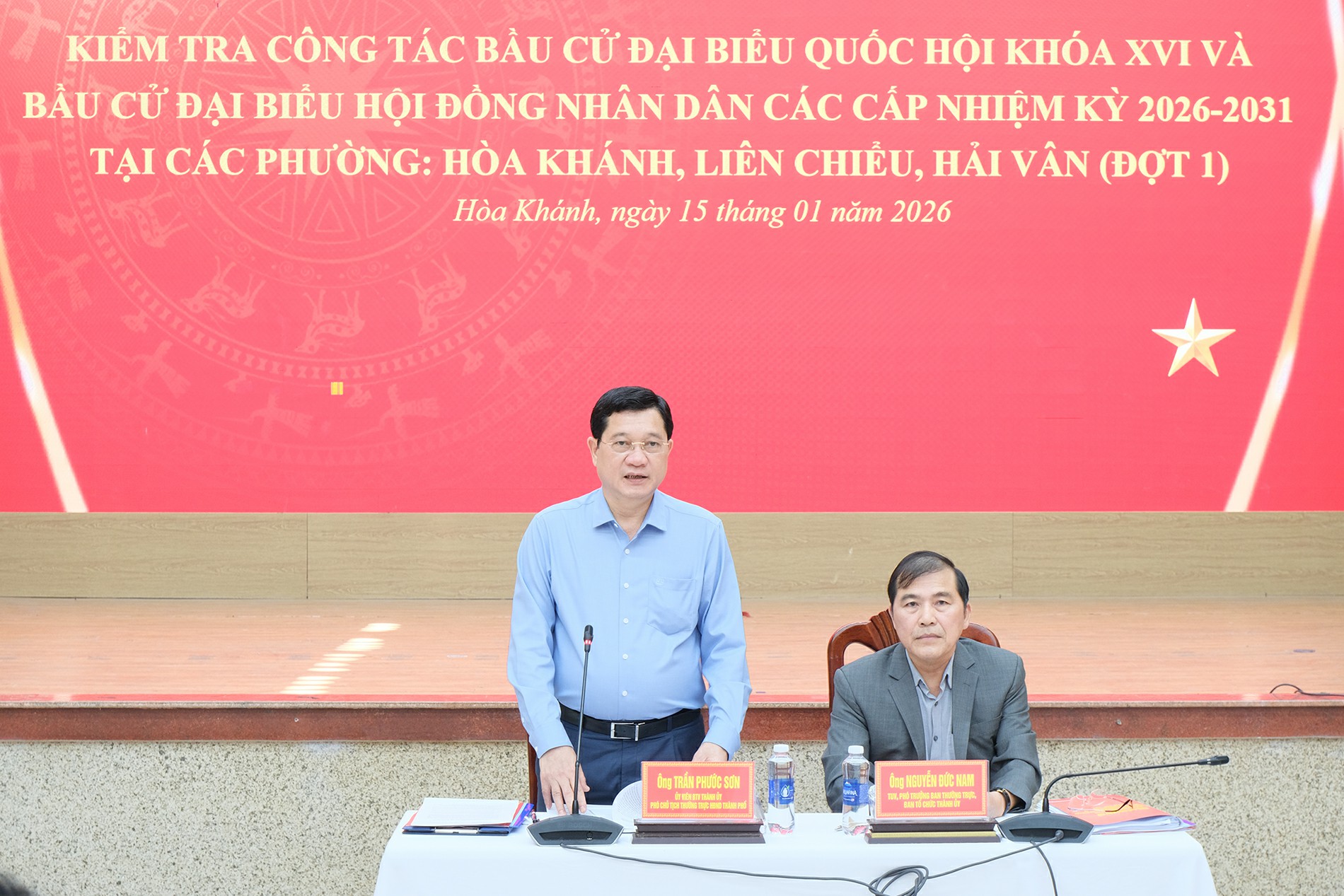 Chiều 15-1, Phó Chủ tịch Thường trực HĐND thành phố Trần Phước Sơn - Trưởng ban Bầu cử đại biểu Quốc hội khoá XVI tại đơn vị bầu cử số 1 kiểm tra công tác bầu cử đại biểu Quốc hội khóa XVI và HĐND các cấp nhiệm kỳ 2026-2031 tại các phường Hòa Khánh, Liên Chiểu, Hải Vân (đợt 1).