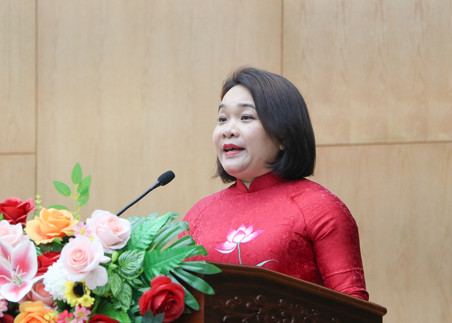 Trưởng Ban Tuyên giáo và Dân vận Thành ủy Huỳnh Thị Thùy Dung phát biểu tại lễ tổng kết và trao giải