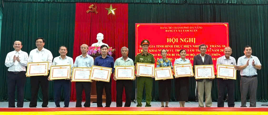 Chiều 31-10, Đảng uỷ xã Tam Xuân long trọng tổ chức Lễ trao Huy hiệu Đảng đợt 7 tháng 11 năm 2025 cho các đảng viên đủ điều kiện và khen thưởng các tập thể, cá nhân đã có thành tích xuất sắc trong thực hiện đợt thi đua cao điểm cấp đổi thẻ đảng viên năm 2025.