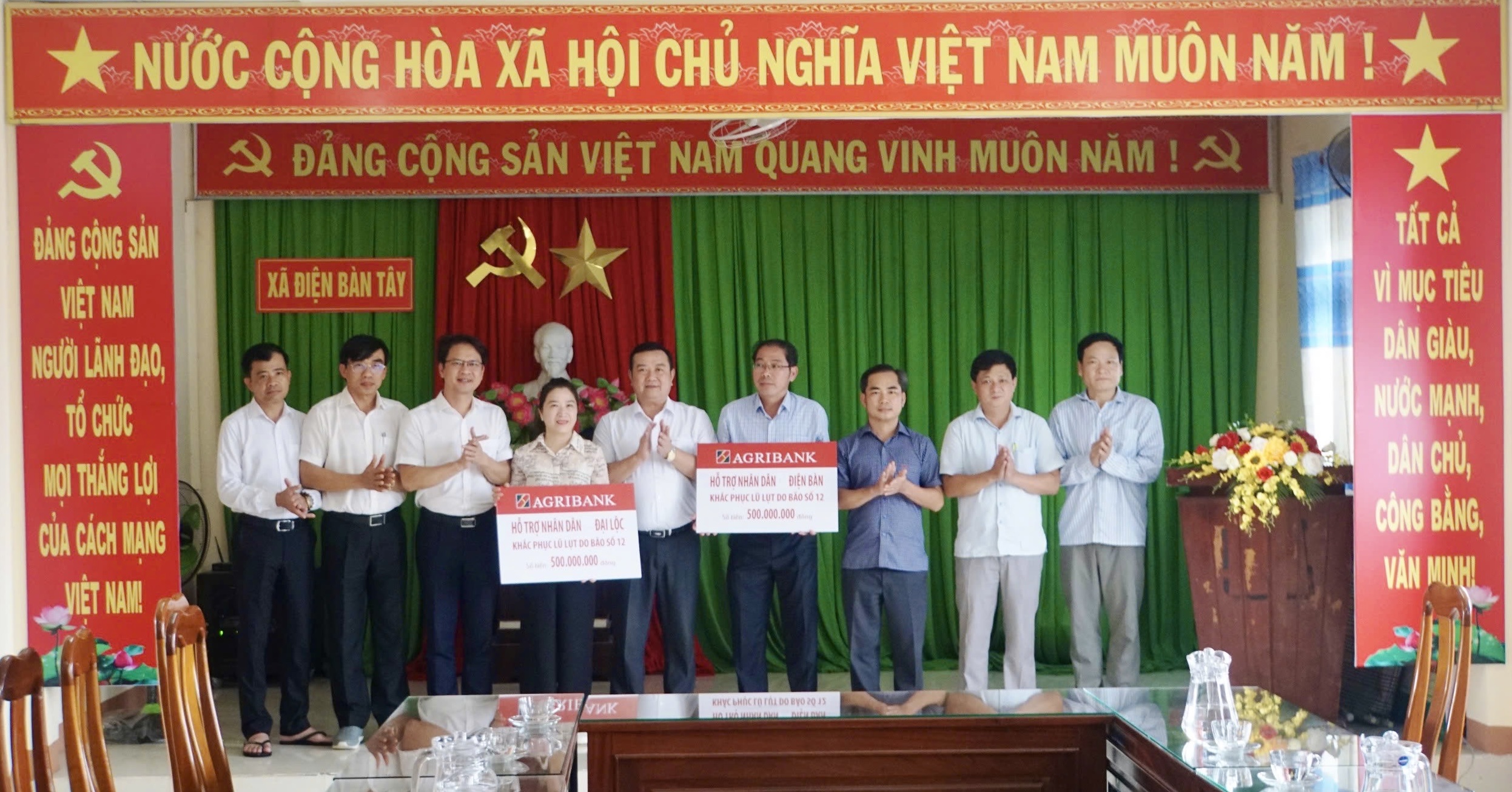 Chiều 03-11, Văn phòng đại diện Agribank khu vực miền Trung do ông Nguyễn Tiến Trường làm trưởng đoàn đã đến thăm hỏi chính quyền và người dân bị thiệt hại do bão lụt tại khu vực Đại Lộc và Điện Bàn.