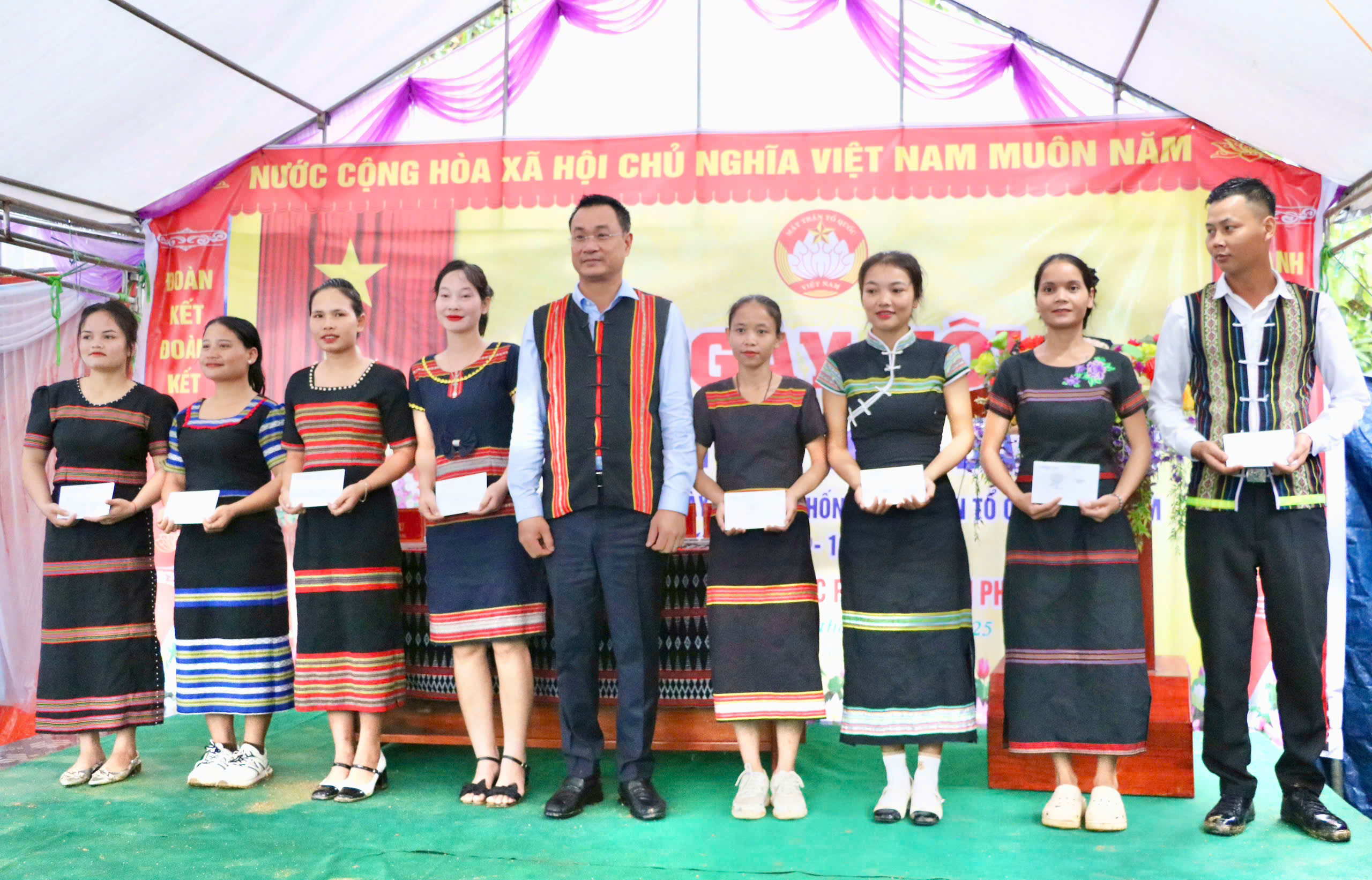 Tại ngày hội, lãnh đạo thành phố tặng quà cho các hộ khó khăn, hộ dân bị thiệt hại do thiên tai và tặng quà cho các già làng, người có uy tín trong cộng đồng.