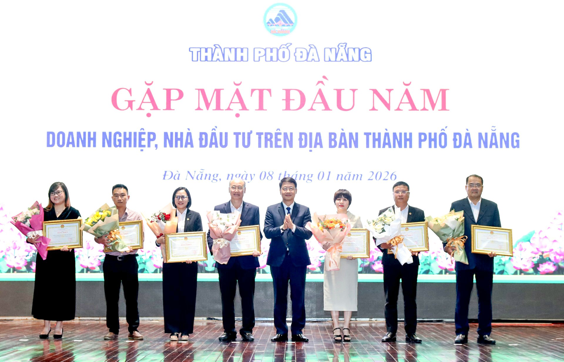 Dịp này, lãnh đạo thành phố đã khen thưởng 4 Hội, Hiệp hội doanh nghiệp có thành tích nổi bật trong đồng hành cùng chính quyền; 18 doanh nghiệp tiêu biểu trong công tác an sinh xã hội, phòng chống thiên tai; 10 tập thể nộp ngân sách lớn và 7 tập thể thực hiện tốt nghĩa vụ thuế năm 2025.