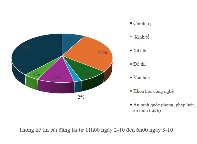 Từ 11h00 ngày 2-10 đến 6h00 ngày 3-10, có khoảng 239 tin, bài báo viết về thành phố Đà Nẵng.