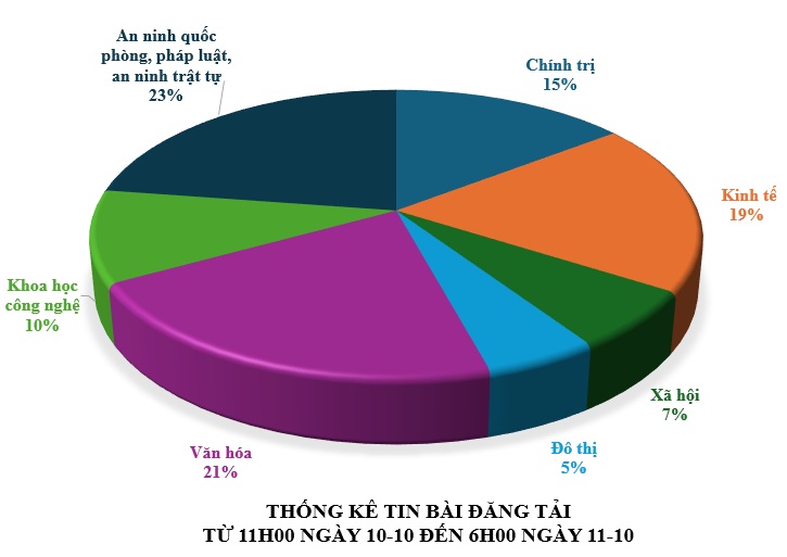 Từ 11h00 ngày 10-10 đến 6h00 ngày 11-10, có khoảng 212 tin, bài báo viết về thành phố Đà Nẵng.