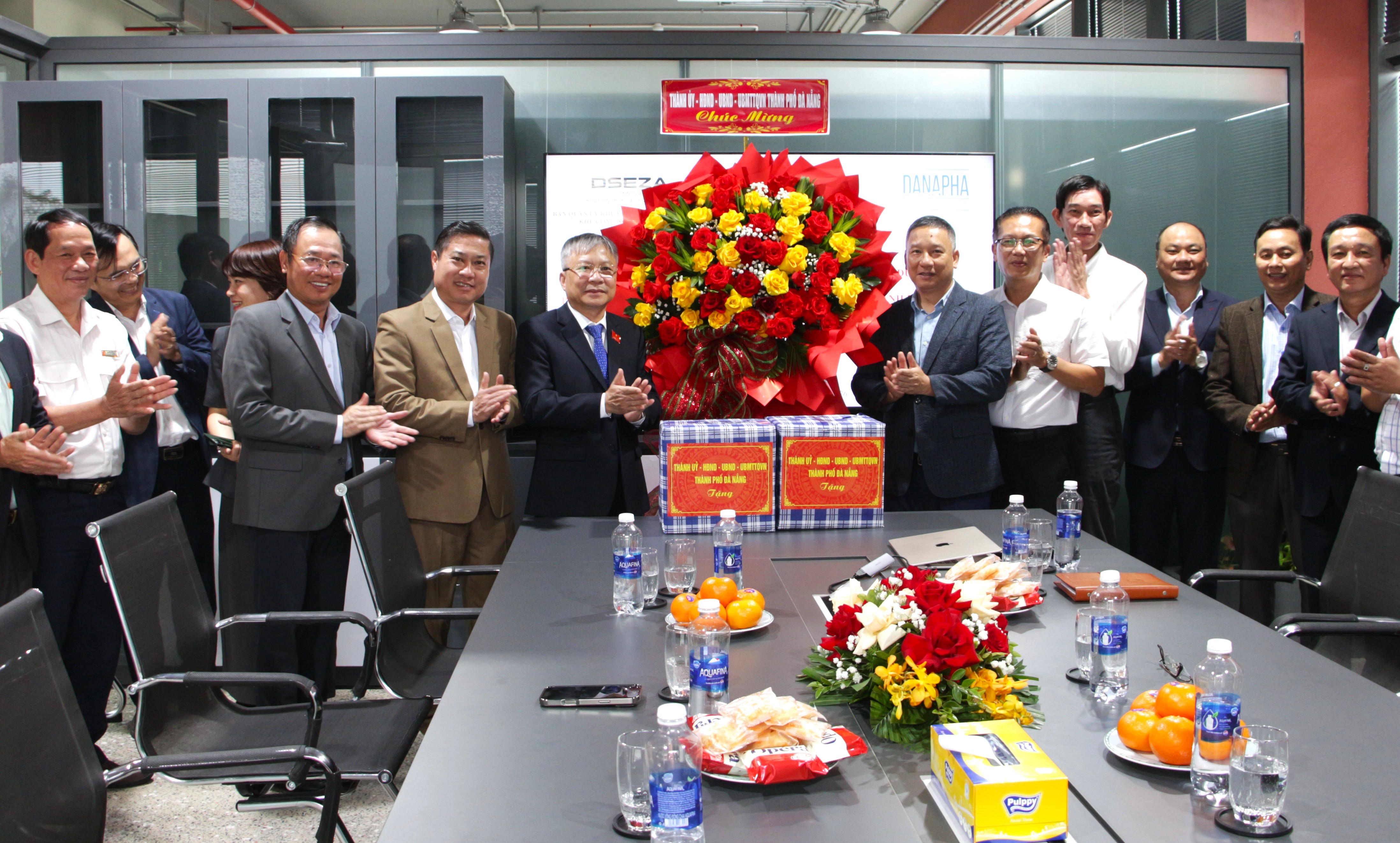 Tặng hoa chúc mừng Công ty TNHH ICT Vina Đà Nẵng (thuộc Tập đoàn Dentium), Chủ tịch HĐND thành phố đánh giá cao việc Tập đoàn Dentium chọn Khu Công nghệ cao Đà Nẵng làm điểm đến đầu tư chiến lược, góp phần củng cố niềm tin của nhà đầu tư và thúc đẩy hình thành hệ sinh thái công nghiệp công nghệ cao.