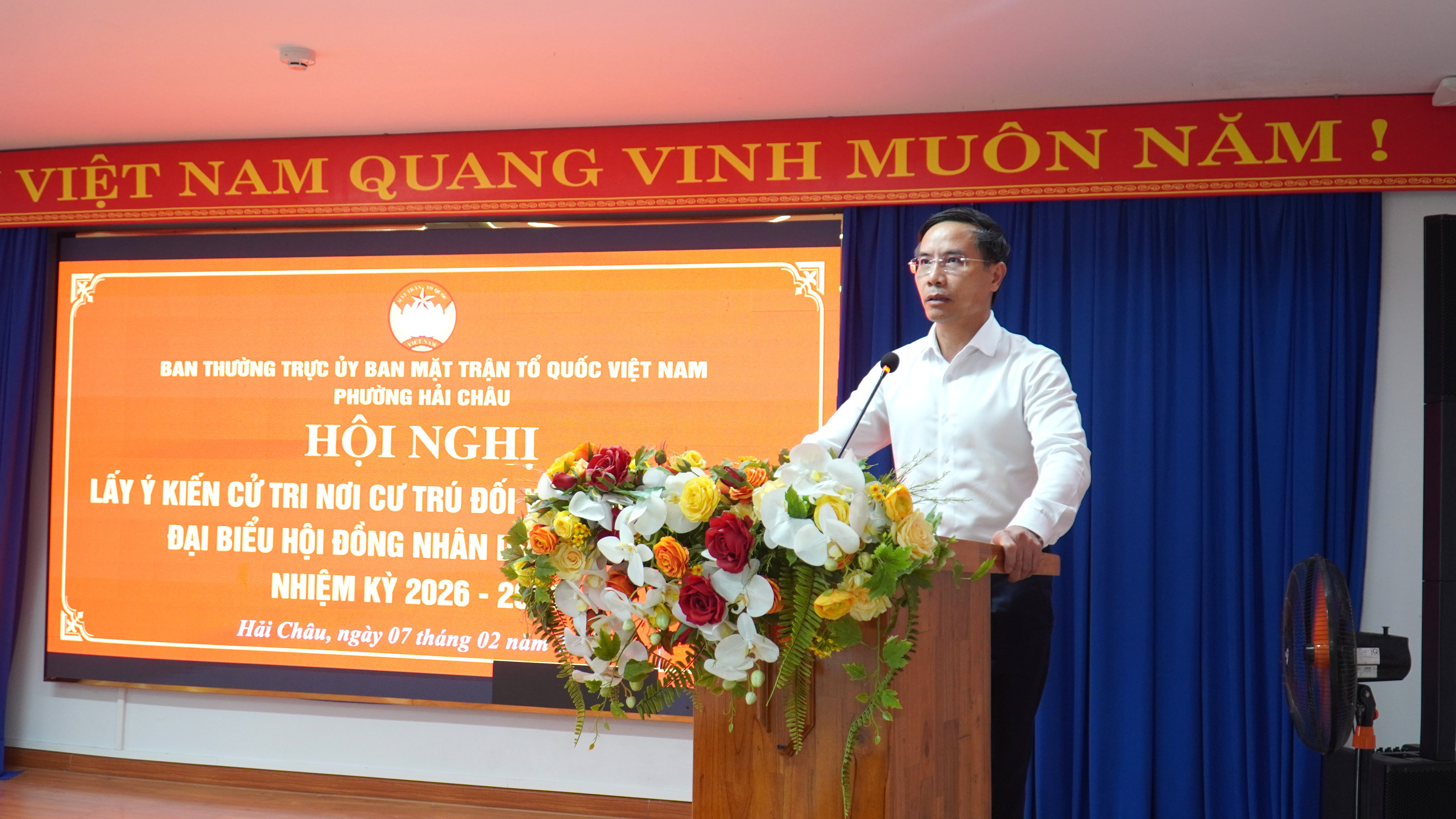 Chiều 07-02, Ban Thường trực Ủy ban MTTQ Việt Nam phường Hải Châu phối hợp UBND phường tổ chức hội nghị lấy ý kiến cử tri nơi cư trú đối với người được giới thiệu ứng cử đại biểu HĐND các cấp nhiệm kỳ 2026 – 2031.