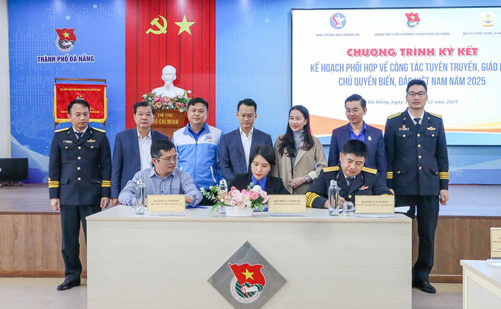Chiều 31-12, Thành Đoàn, Nhà Trưng bày Hoàng Sa, Bộ Tư lệnh Vùng 3 Hải quân tổ chức lễ ký kết kế hoạch phối hợp tuyên truyền giáo dục chủ quyền biển, đảo Việt Nam năm 2025.