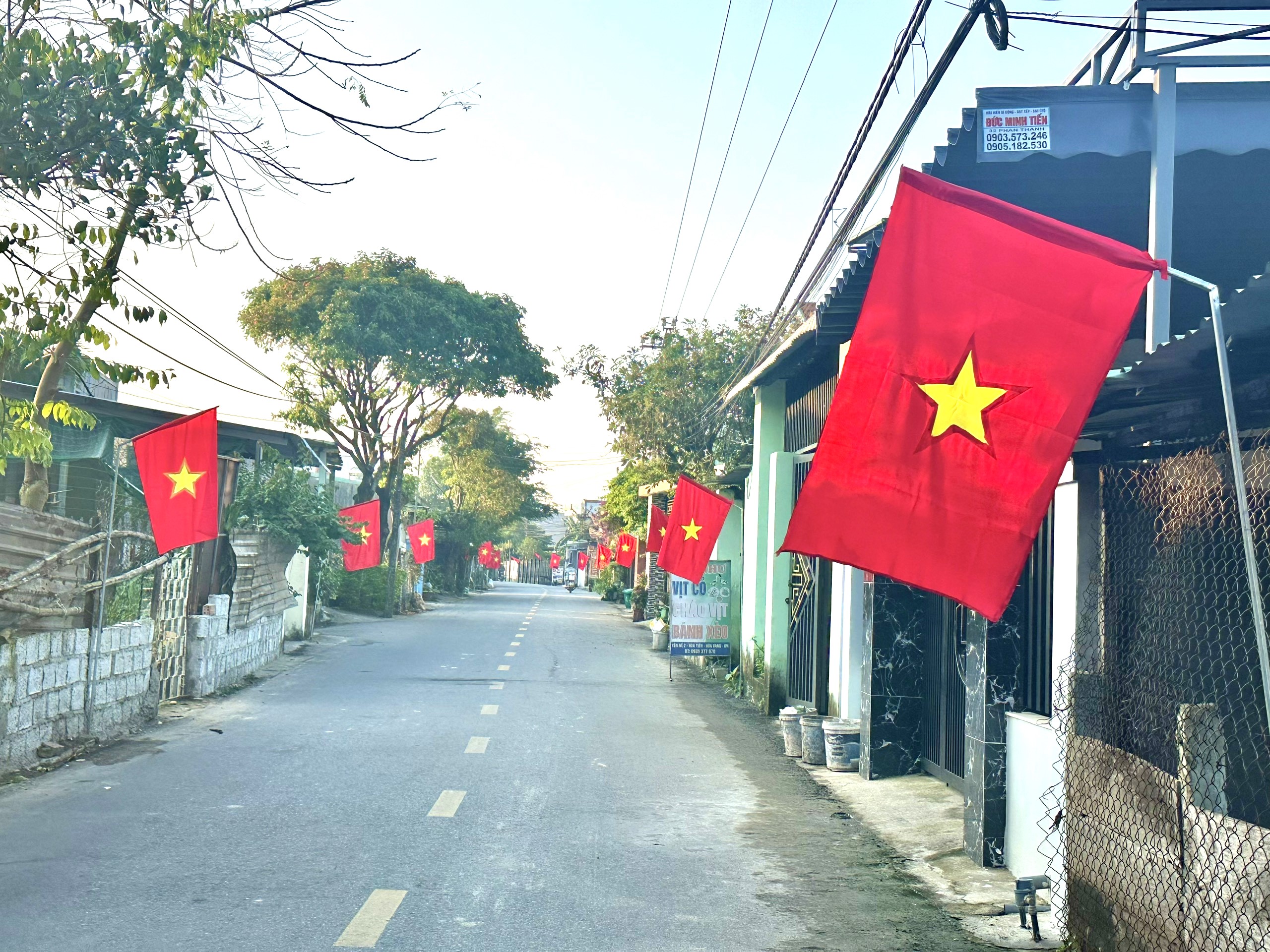 Tại các khu dân cư, người dân treo cờ Tổ quốc, tạo khí thế mới trước thềm Đại hội