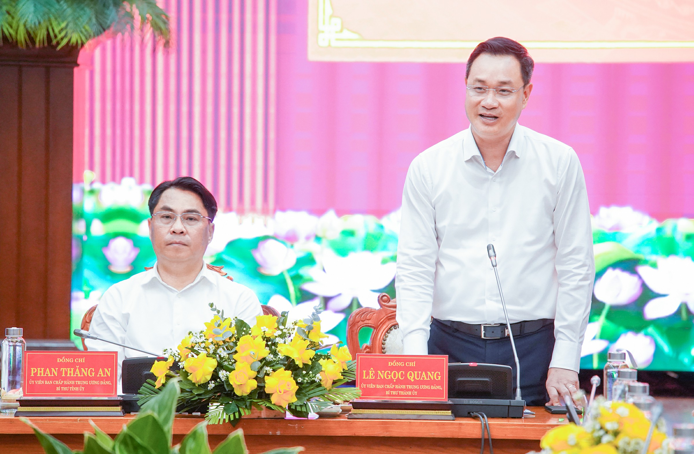 Bí thư Thành ủy Lê Ngọc Quang phát biểu tại buổi làm việc
