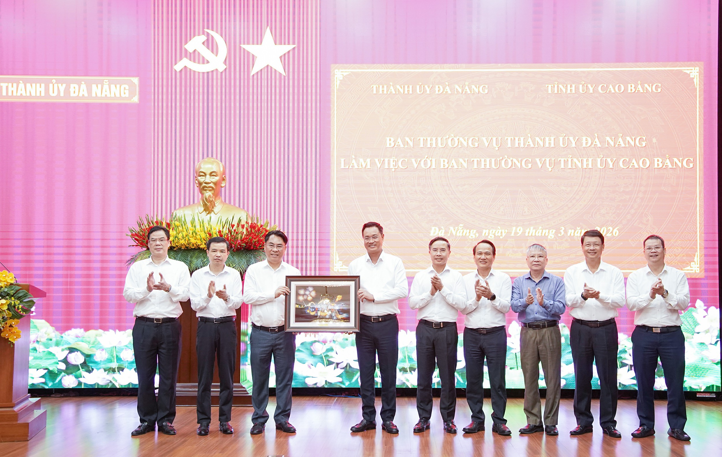 Chiều 19-3, Ban Thường vụ Thành ủy Đà Nẵng có buổi làm việc với Ban Thường vụ Tỉnh ủy Cao Bằng về công tác triển khai Nghị quyết số 57-NQ/TW, công tác cải cách hành chính, thu hút đầu tư và một số kinh nghiệm về quy hoạch, phát triển công nghiệp, dịch vụ, du lịch.