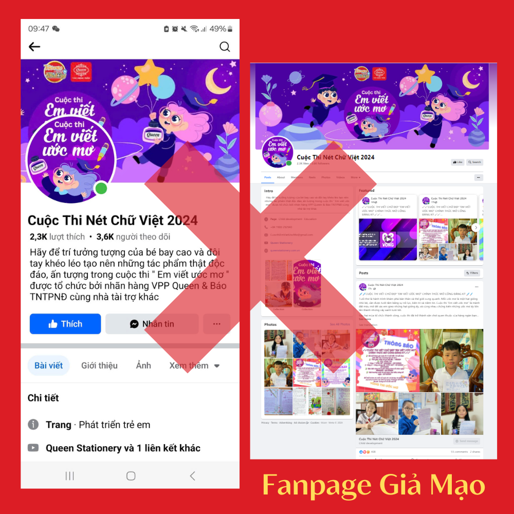 Theo đó, khi thấy trên mạng xã hội có thông tin về cuộc thi viết chữ đẹp với nội dung “Cùng Eras và Câu lạc bộ chữ đẹp Việt tôn vinh nghệ thuật viết chữ đẹp qua cuộc thi Chữ đẹp Việt Nam năm 2024 với chủ đề Tuổi thơ cho em”, vị phụ huynh này đã đăng ký cho con mình tham gia. Sau khi đăng ký vào đường link của cuộc thi, phụ huynh đã được “nhân viên hướng dẫn” của cuộc thi liên hệ, yêu cầu chuyển tiền để học sinh có thể tham gia. Ban đầu chỉ vài trăm ngàn, rồi vài triệu đồng. Sau nhiều lần, phụ huynh này đã chuyển cho “nhân viên hướng dẫn” kia tổng số tiền 55 triệu đồng. Tuy nhiên, con của vị phụ huynh này vẫn không thể thi viết chữ đẹp được, đồng thời cũng không liên lạc được với “nhân viên” này.