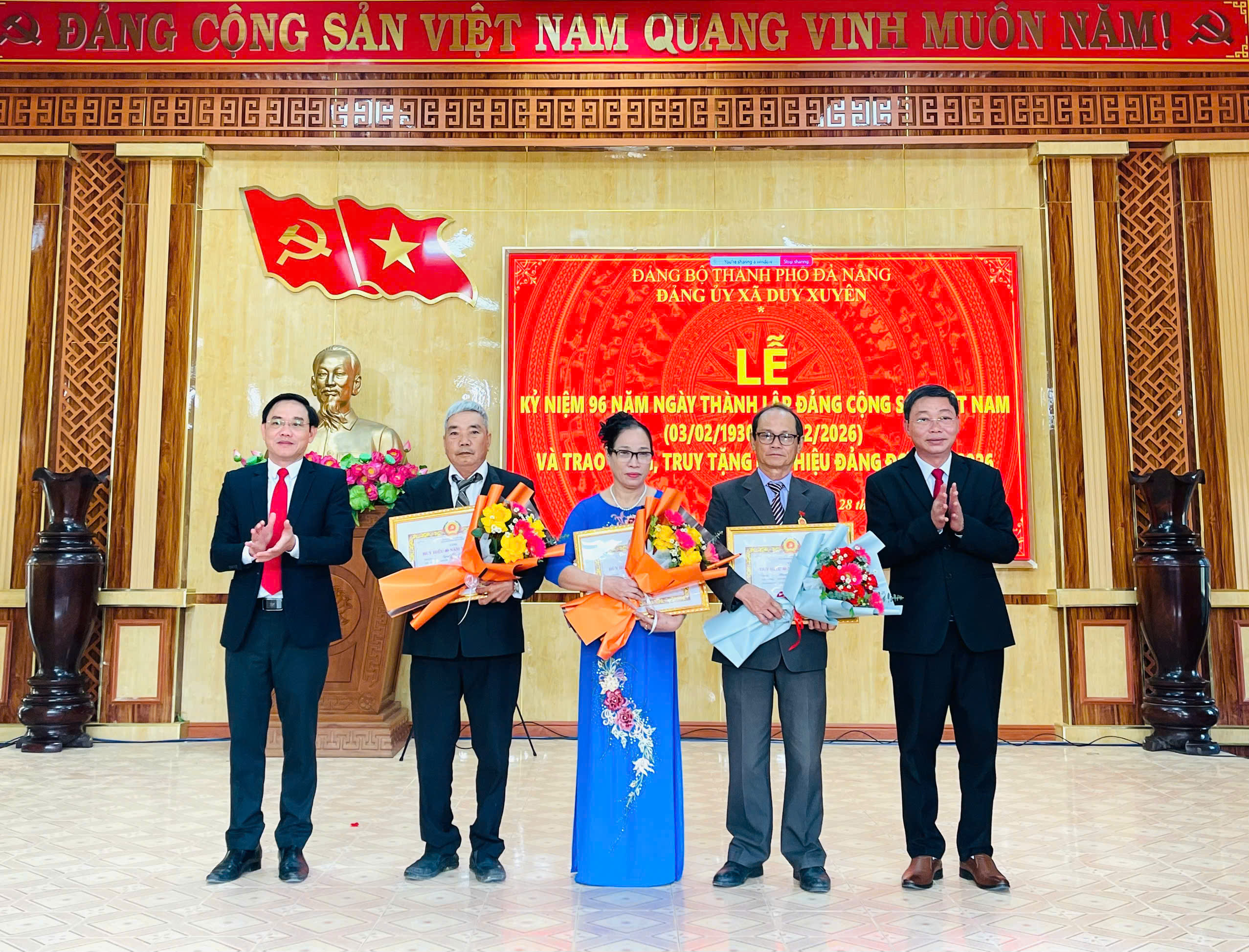 Sáng 28-01, Đảng uỷ xã Duy Xuyên tổ chức lễ kỷ niệm 96 năm Ngày thành lập Đảng Cộng sản Việt Nam (03/02/1930 – 03/02/2026) và trao tặng, truy tặng Huy hiệu Đảng đợt 3/2 cho các đảng viên đủ điều kiện.