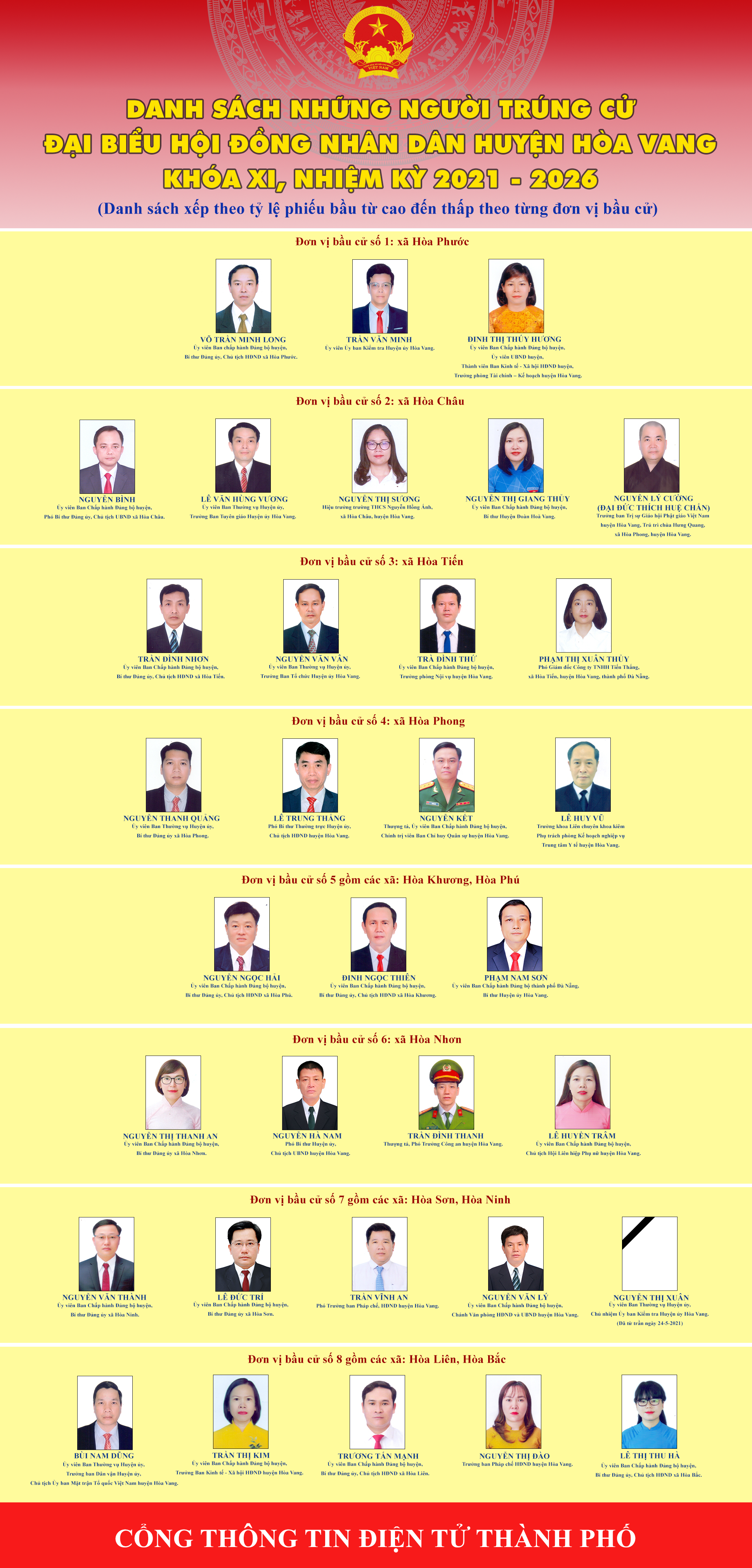 Danh sách 33 đại biểu HĐND huyện Hòa Vang khóa XI, nhiệm kỳ 2021-2026
