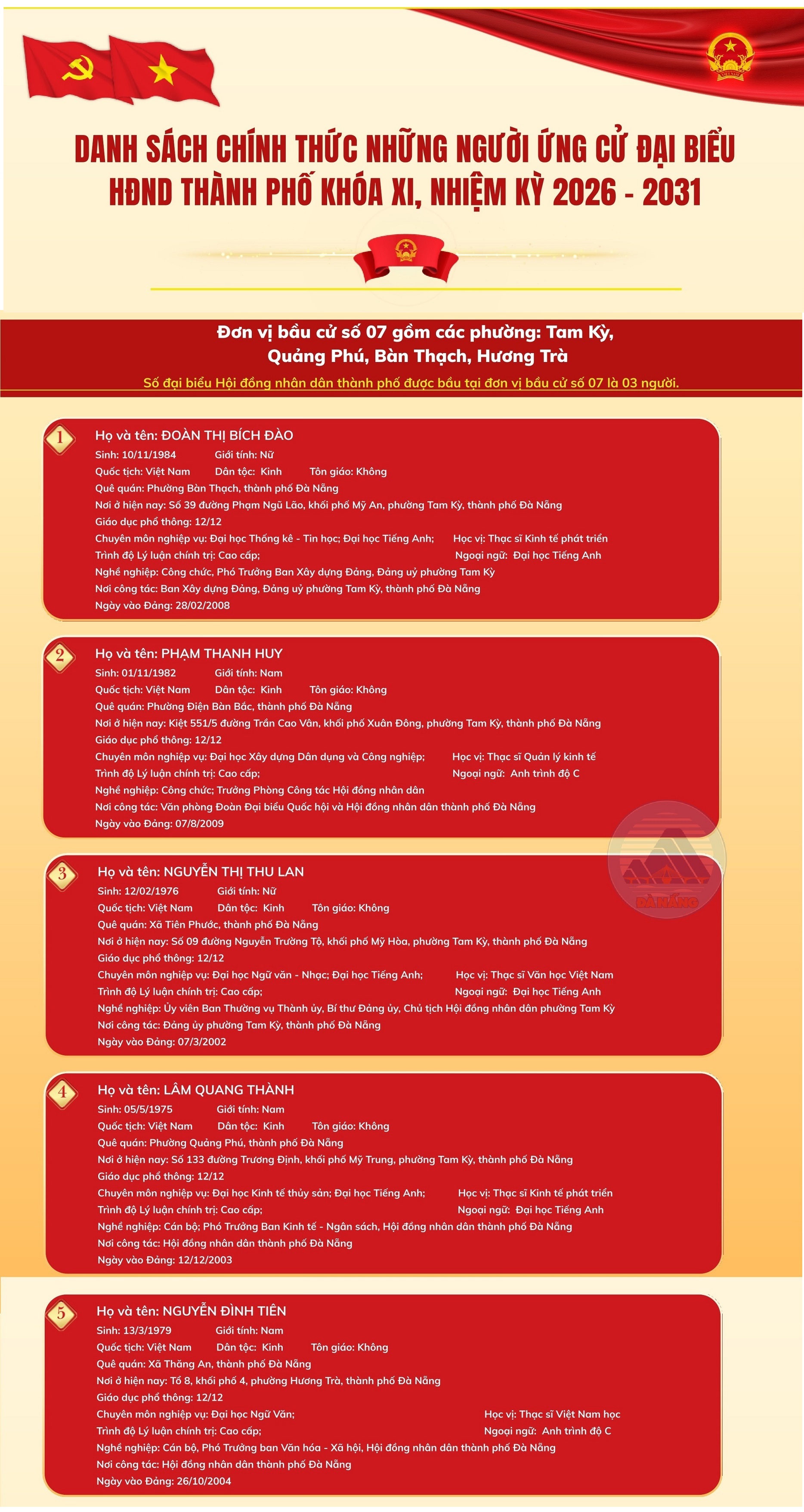 Danh sách người ứng cử đại biểu HĐND thành phố khóa XI tại Đơn vị bầu cử số 07