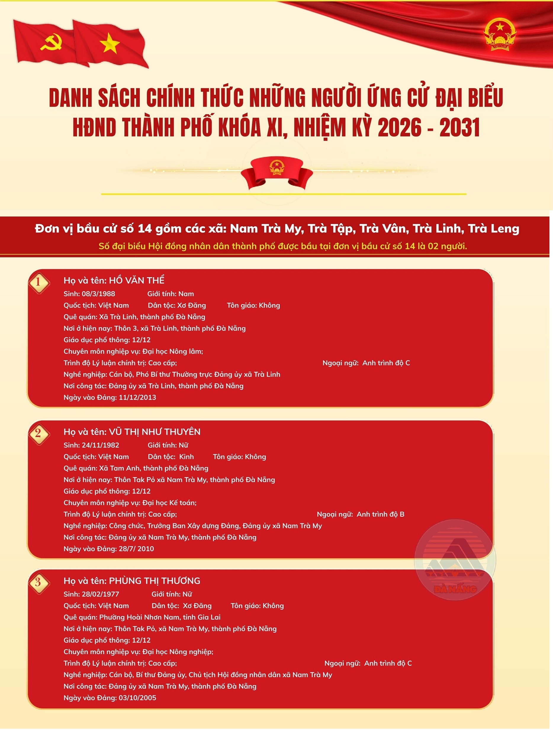 Danh sách người ứng cử đại biểu HĐND thành phố khóa XI tại Đơn vị bầu cử số 14