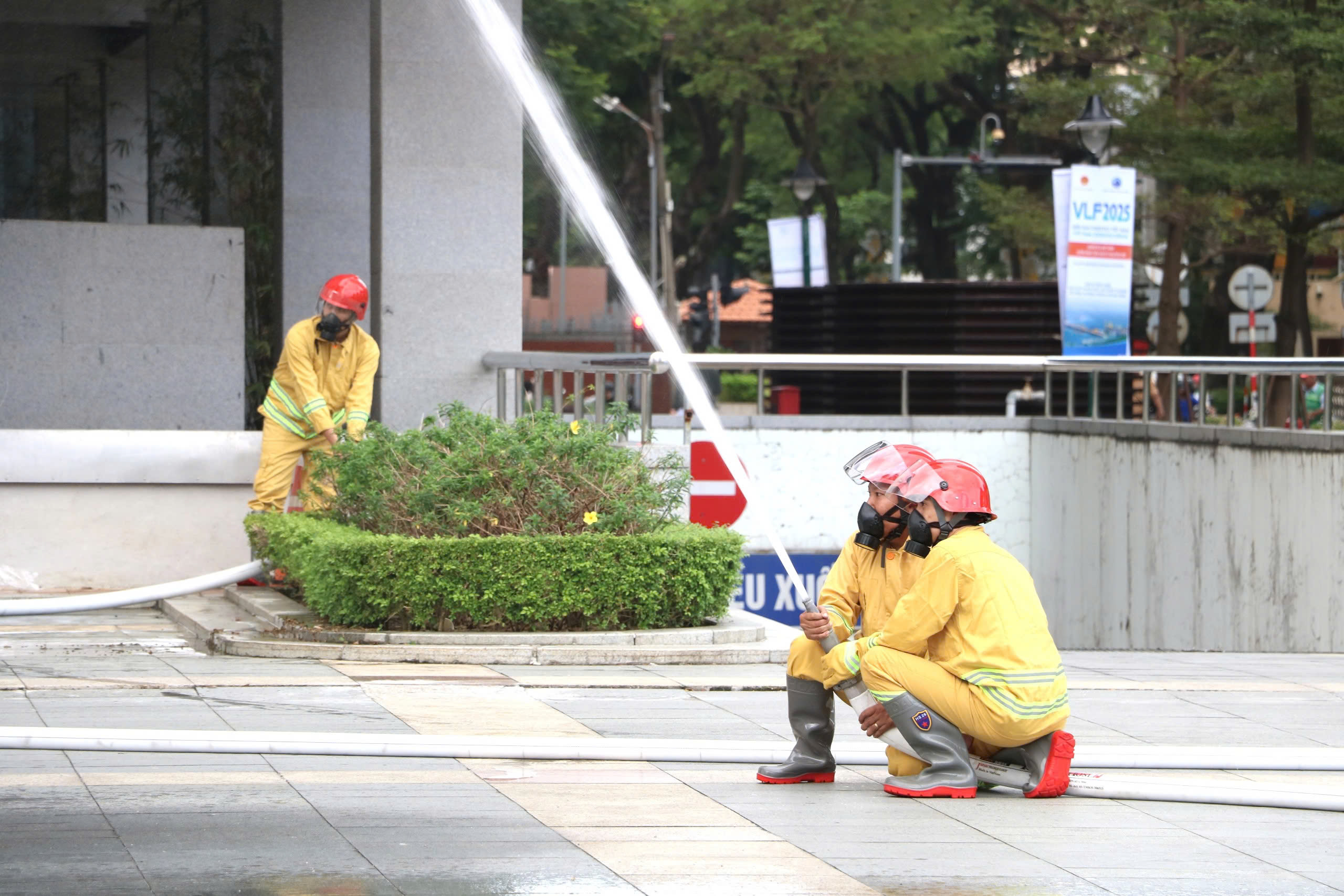 Sau khoảng 10 phút, đám cháy giả định được dập tắt, toàn bộ người bị nạn được đưa đến nơi an toàn và chuyển giao cho lực lượng y tế tiếp nhận sơ cứu hoặc đưa đi cấp cứu.