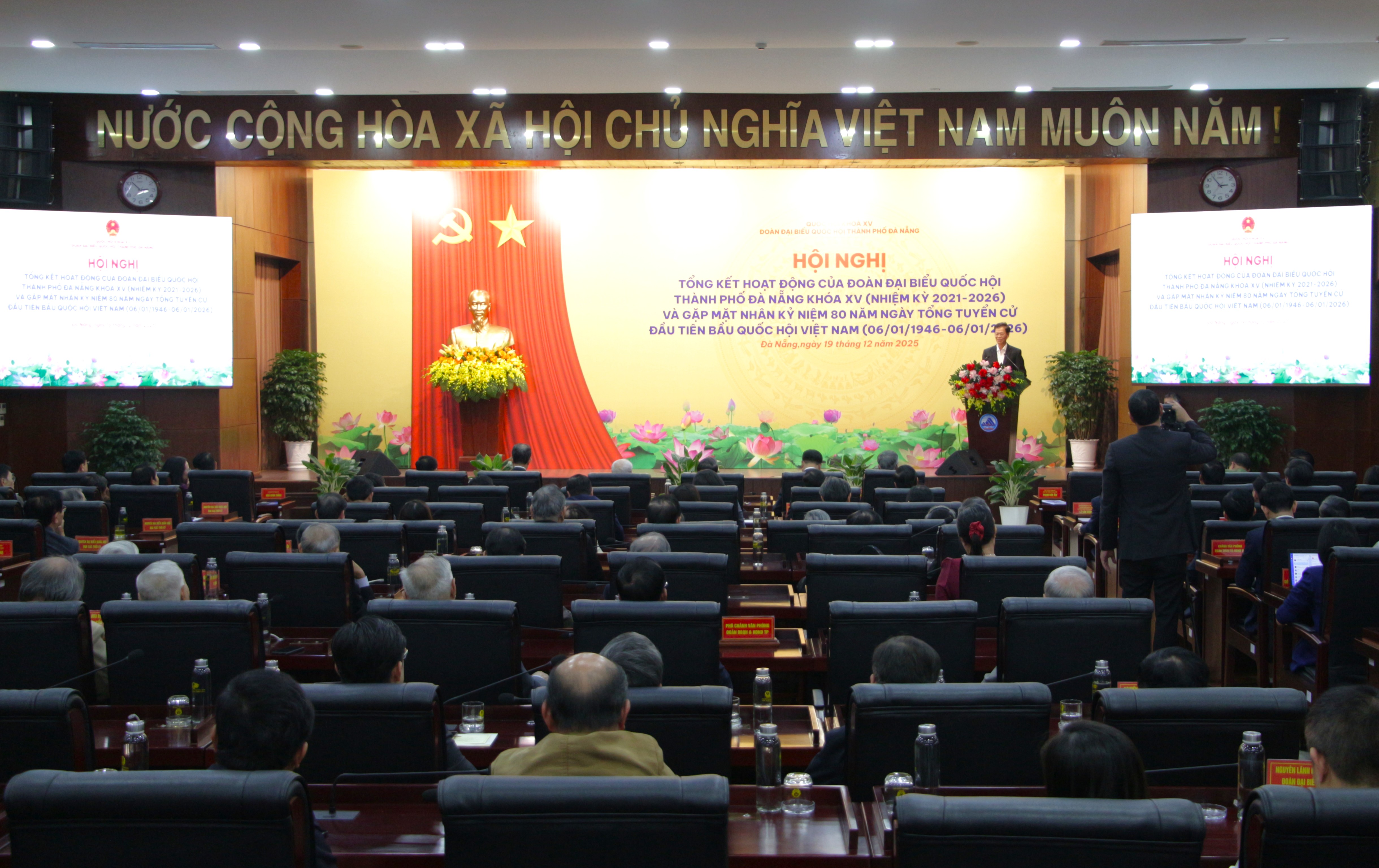 Chiều 19-12, Đoàn đại biểu Quốc hội thành phố Đà Nẵng (ĐBQH) tổ chức hội nghị tổng kết hoạt động của ĐBQH thành phố Đà Nẵng khóa 15 (nhiệm kỳ 2021 - 2026) và gặp mặt nhân Kỷ niệm 80 năm ngày Tổng tuyển cử đầu tiên bầu Quốc hội Việt Nam (6/1/1946 - 6/1/2026).