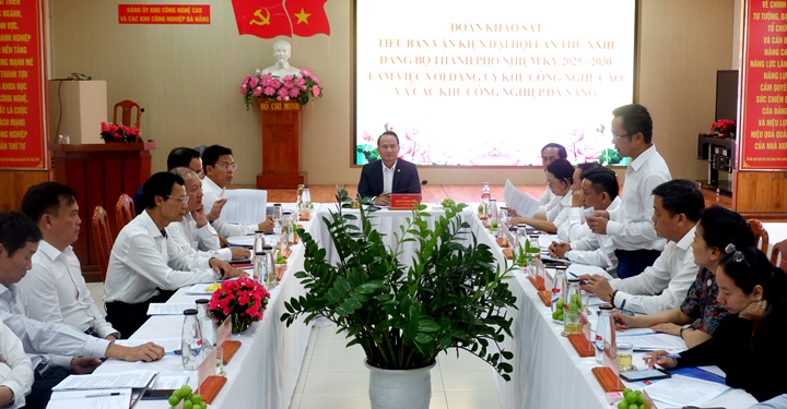 Đây là chỉ đạo của Phó Bí thư Thường trực Thành ủy Nguyễn Đình Vĩnh tại buổi làm việc của Đoàn khảo sát Tiểu ban Văn kiện Đại hội lần thứ XXIII Đảng bộ thành phố nhiệm kỳ 2025-2030 với Đảng ủy Khu Công nghệ cao và các khu công nghiệp Đà Nẵng (KCNC&CKCN) vào sáng 8-11.