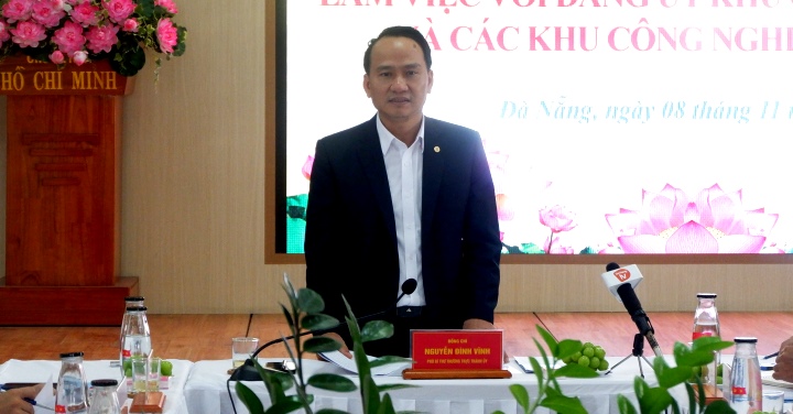 Phó Bí thư Thường trực Thành ủy Nguyễn Đình Vĩnh chủ trì buổi làm việc của Đoàn khảo sát Tiểu ban Văn kiện Đại hội lần thứ XXIII Đảng bộ thành phố nhiệm kỳ 2025-2030 với Đảng ủy Khu Công nghệ cao và các khu công nghiệp Đà Nẵng