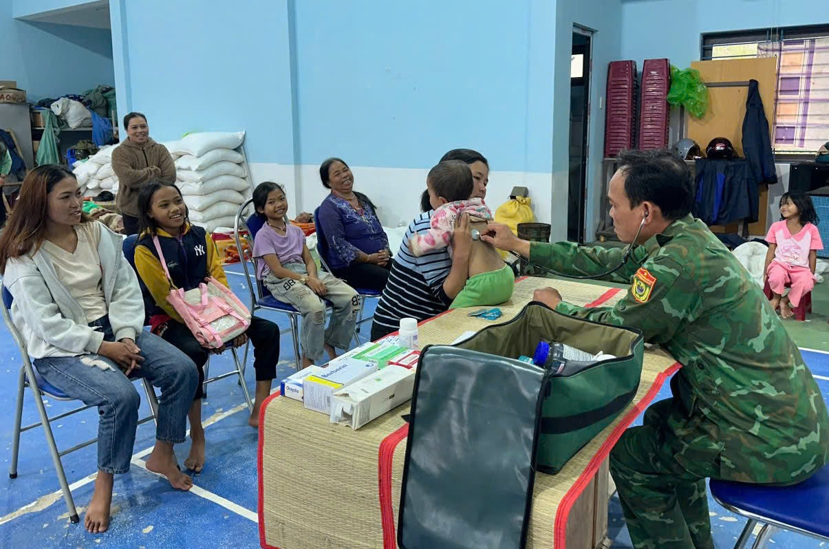 Ngoài đảm bảo bữa ăn và sức khỏe cho bà con, lực lượng Biên phòng thường xuyên tuyên truyền, động viên người dân yên tâm ở lại khu vực tránh trú, hạn chế di chuyển qua các điểm sạt lở nguy hiểm.