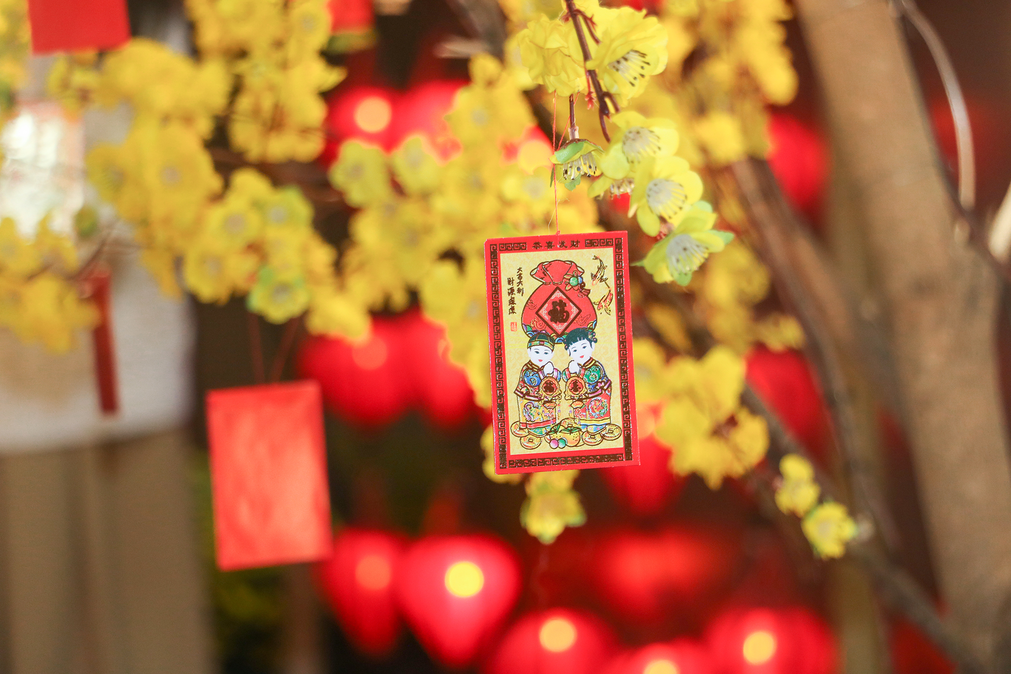 Đại biểu chụp ảnh lưu niệm trong không gian trang trí Tết cổ truyền