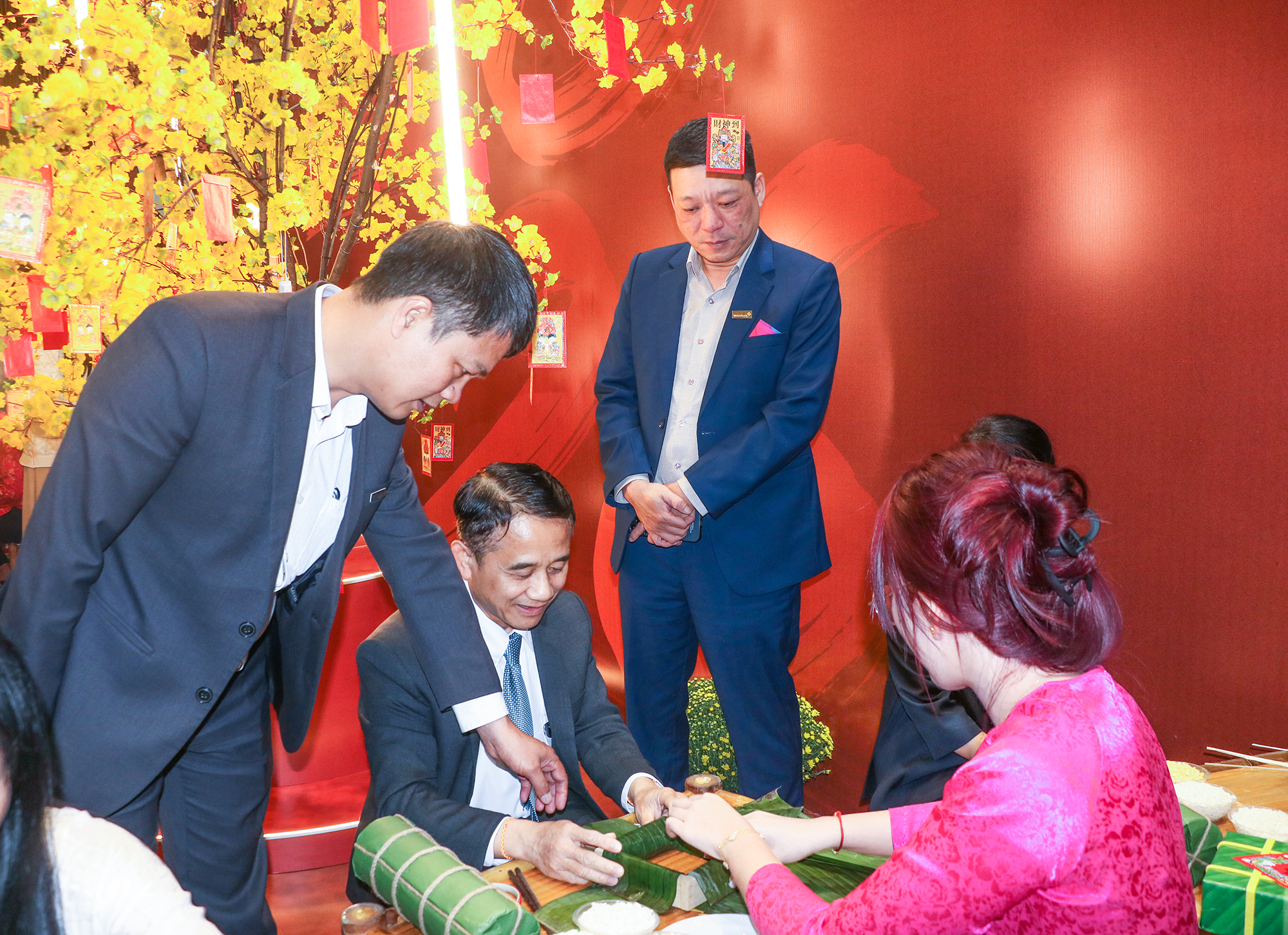 Tại không gian trải nghiệm, các đại biểu đã tham gia hoạt động gói bánh chưng – một nét sinh hoạt văn hóa đặc trưng trong dịp Tết cổ truyền của người Việt, thể hiện tinh thần sum vầy, gắn kết.