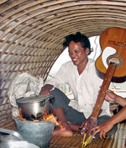 kích thích bụng dạ mọi người dữ dội. Vừa thưởng thức, vừa xuýt xoa khen ngon, một anh bạn quả quyết rằng ăn con cá trên suốt dọc chiều dài đất nước không ở đâu ngon bằng con cá trên phá Tam Giang bởi nó có mùi… đầm phá. Một anh khác giải thích thêm rằng đó là nhờ mùi rong tảo đặc trưng, chỉ có nơi phá Tam Giang này… Không khí càng lúc càng sôi nổi, hào hứng. Ai cũng thi nhau ăn to nói lớn, thậm chí vớ cây đàn tranh nhau hát như gào lên. Xoong, nồi, chén bát, muỗng, đũa đều trở thành… nhạc cụ, song chẳng ai tỏ vẻ khó chịu vì ở nơi mênh mông trên trời, dưới nước này, gây ồn ào huyên náo chẳng “xi nhê” gì đến… ông trời cả.