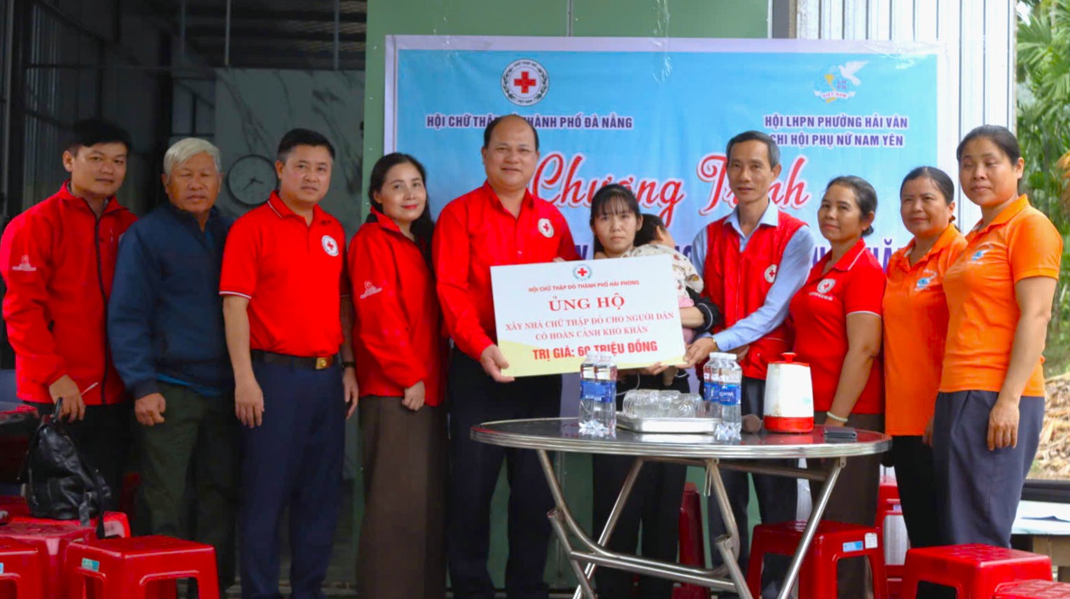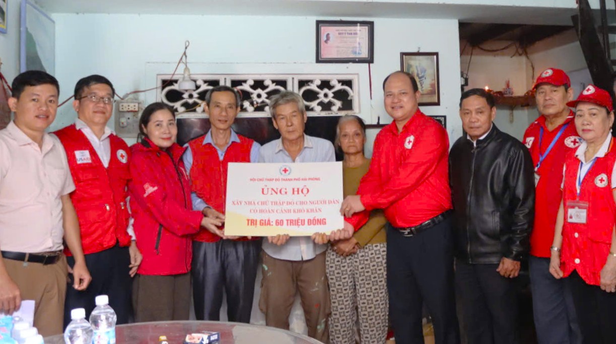 Trao 60 triệu đồng hỗ trợ từ Hội Chữ thập đỏ thành phố Hải Phòng cho  gia đình chị Diệp Thị Quý Mến
