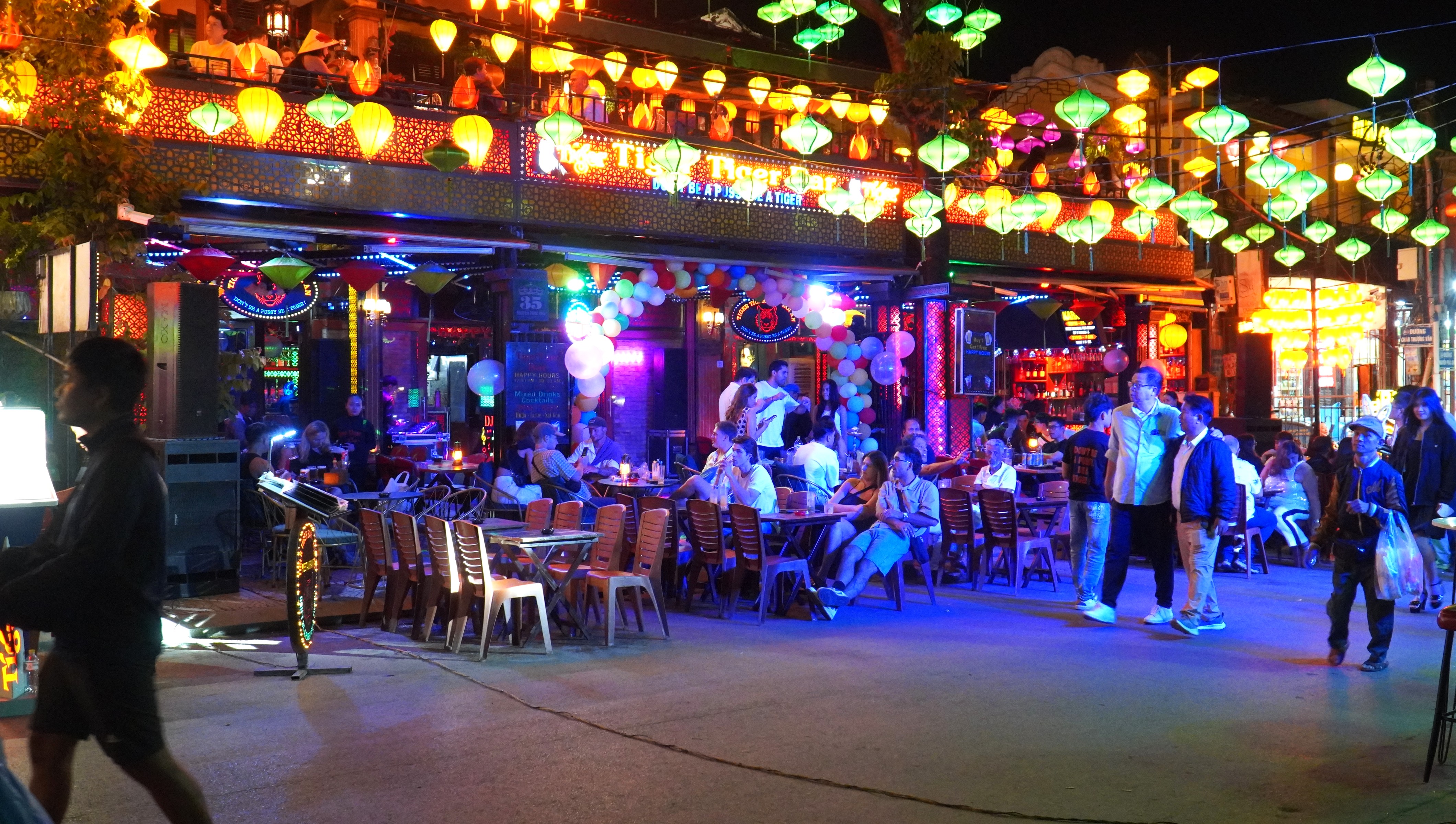 Nhiều du khách lựa chọn thưởng thức bia và ẩm thực địa phương tại các quán bar, lounge ven sông Hoài. Trong khi đó, nhiều du khách khác tham gia các hoạt động văn hóa truyền thống như bài chòi, du thuyền thả hoa đăng. Các hoạt động diễn ra đồng thời, đáp ứng nhu cầu đa dạng của người dân và du khách trong dịp đón năm mới.