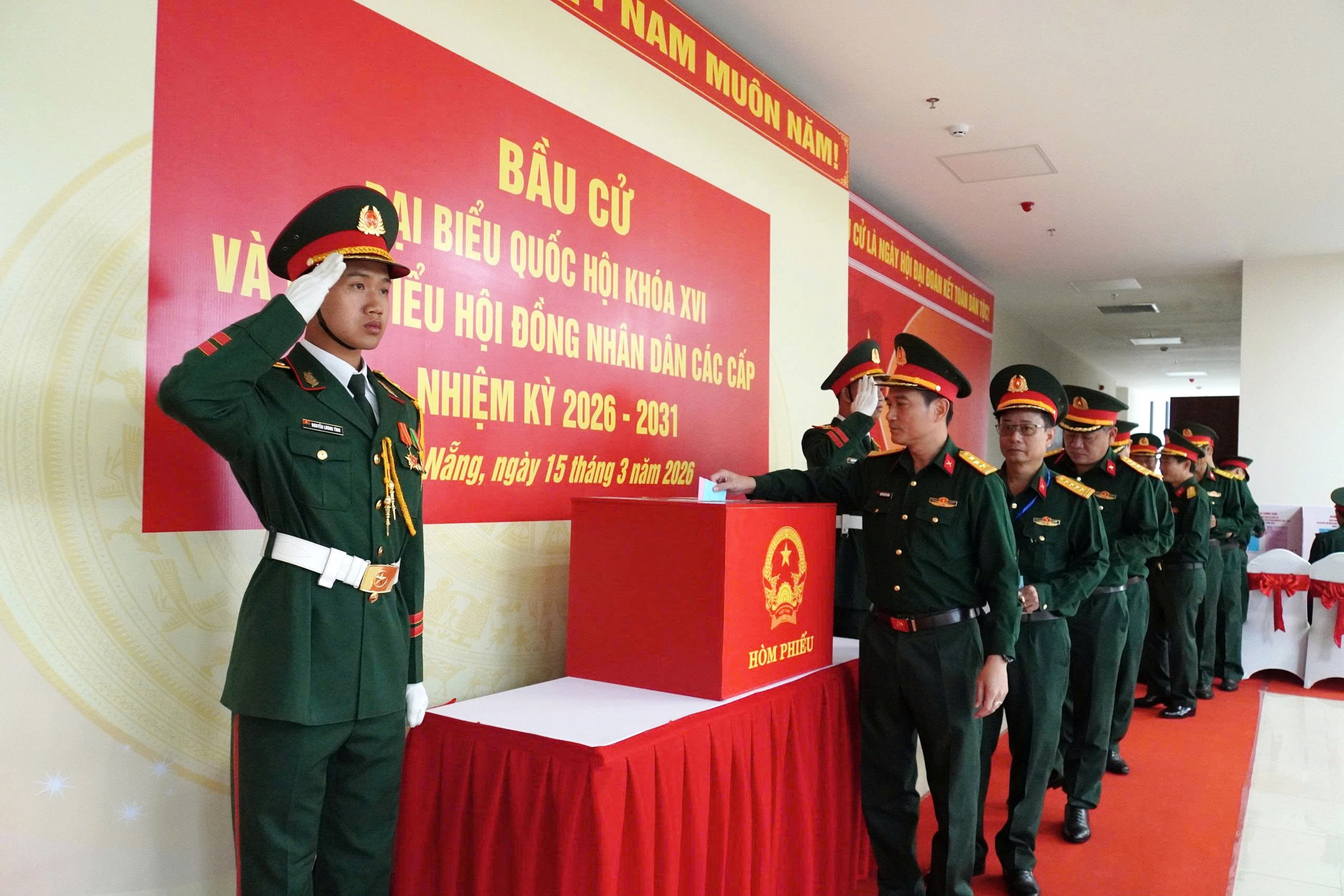 * Tại điểm bầu cử số 24, Cơ quan Bộ Chỉ huy Quân sự thành phố, cán bộ, chiến sĩ đơn vị nô nức tham gia bầu cử đại biểu Quốc hội khóa XVI và đại biểu Hội đồng Nhân dân các cấp nhiệm kỳ 2026 – 2031.
